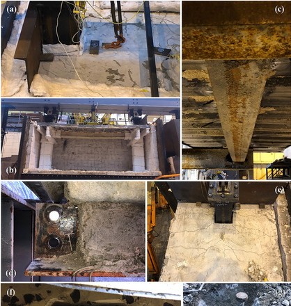 Composite slab and bolted shear tab connections retained integrity thru both tests