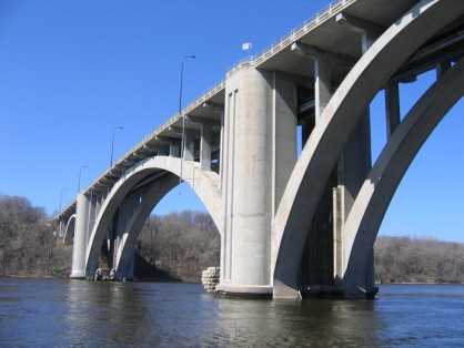 Open-spandrel, concrete arch bridges were common designs in the United States during the early 1900s. The long spans and tall profiles characteristic of this bridge type are well suited to a topography of deep ravines and river valleys. One of these arch bridges, the Franklin Avenue Bridge, was constructed from 1919 to 1923. It is located near Minneapolis and St. Paul, MN, crossing over the Mississippi River Valley with five elegant arch spans.