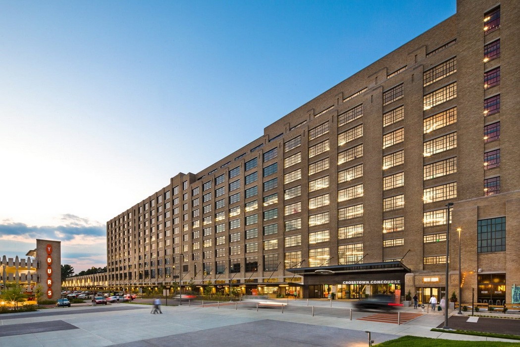 The Crosstown Concourse project recently received a 2019 AIA Architecture Award. Located at the 1.3-million-square-foot former home of the Sears distribution center in Memphis, Tennessee, Crosstown Concourse was the center of a large-scale, mixed-use redevelopment project. The $200 million project transformed the retail distribution center that had stood abandoned since the early 1980s into a vibrant community. The Art Deco, concrete-framed, high-rise building offers many services, including a 400-student charter high school, 20,000-square-foot YMCA fitness center, 450-seat black box theatre, free art gallery, radio station, restaurants and retail, and the nation’s largest private dental clinic. In addition, nearly 300 on-site apartments provide housing for participants in arts, education, and medical residency programs. WJE was the exterior envelope restoration consultant for this adaptive reuse project.