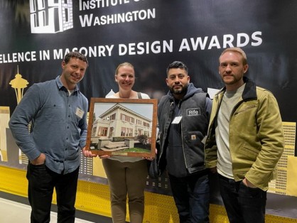 The Gibbs-Sprunk residence (also known as the Gibbs House) project, managed by Senior Associate Becky Wong (pictured second from left), was awarded the 2023 First Place Award for Excellence in the Restoration, Renovation, and Expansion category by the Masonry Institute of Washington (MIW).