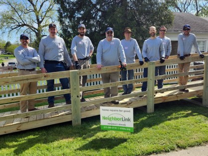 Indianapolis staff recently volunteered with NeighborLink Indianapolis to provide free repairs and build a temporary accessibility ramp for an elderly homeowner. She has lived in her home for fifty-five years and needed a wheelchair ramp for mobility to continue living comfortably in her home after a recent stroke.