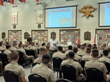 Associate Principal Craig Quadrato spoke on "Thirty-Five Years of Leadership—Military and Beyond" to cadets in the Fightin' Texas Aggie Band at Texas A&M University. The band is the largest military band in the world and is composed of more than four hundred people from the school's Corps of Cadets.