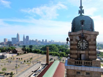 The clock tower is part of the West Side Market, a designated historic landmark that opened in 1912 and is Cleveland's oldest continuously operated, municipally owned market. We performed inspection, repair design, and construction phase services, which included close-up inspections of the brick masonry, terra cotta distress, glass clock face, and clock mechanisms using rappelling techniques on the tower's facades.