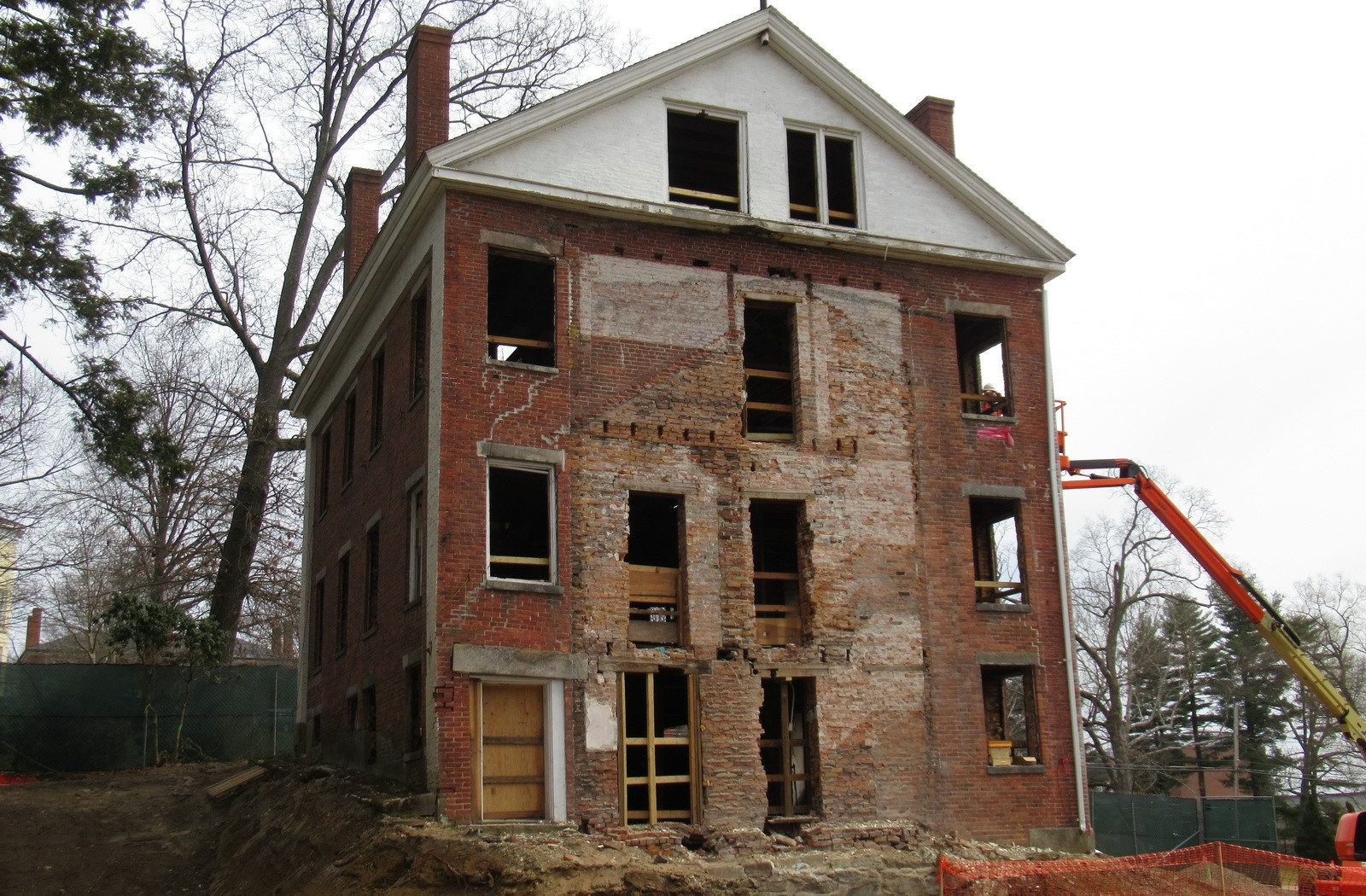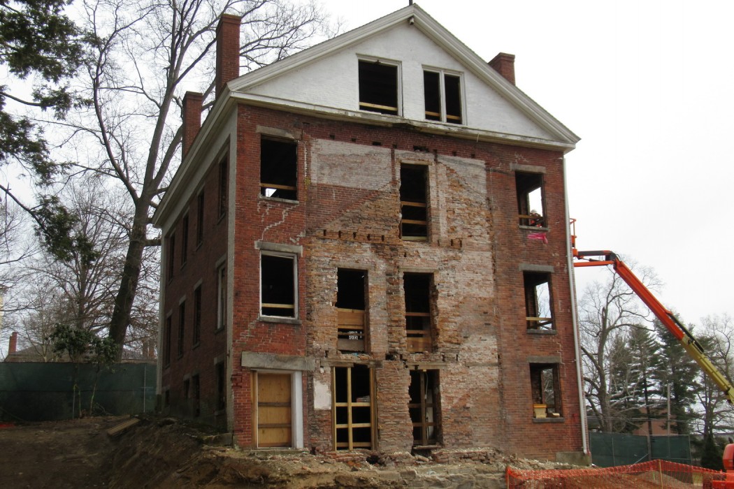 In addition to providing building enclosure consulting to BCA during design development, WJE designed repairs to the historic brick masonry facades and performed hygrothermal analysis of the proposed exterior wall assemblies. This analysis included sampling and testing of the existing brick masonry by our Janney Technical Center laboratories. As the project moved into construction, we completed construction site visits and observed performance mock-up construction and testing as well as in situ performance testing. Our professionals collaborated with BCA to monitor the exterior wall assemblies with hygrothermal sensors as part of ongoing research into the long-term performance of highly insulated double wood-stud-framed wall assemblies.