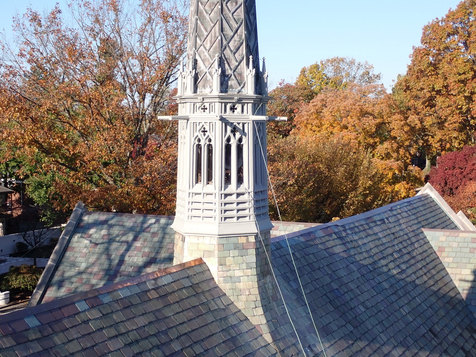 - Repair of the lead midsection and finials of the fleche and application of a reinforced, color matched coating system