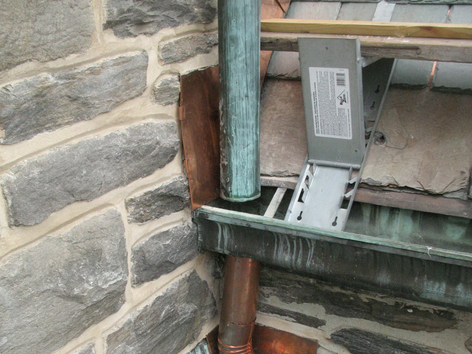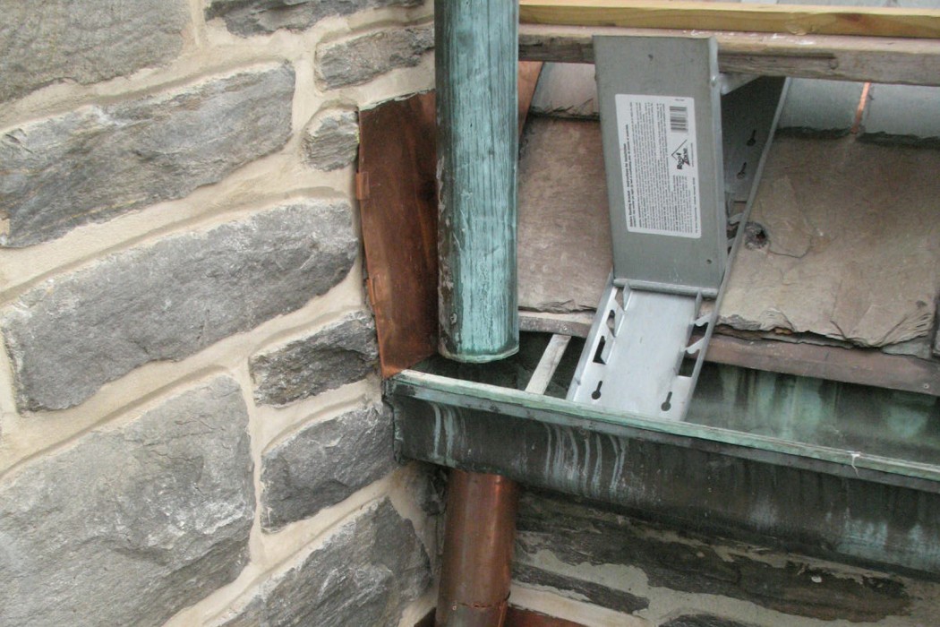 - Installation of partial copper coping caps, through-wall flashings, and gusset flashings to address otherwise impossible-to-flash areas at gable end wall returns