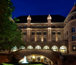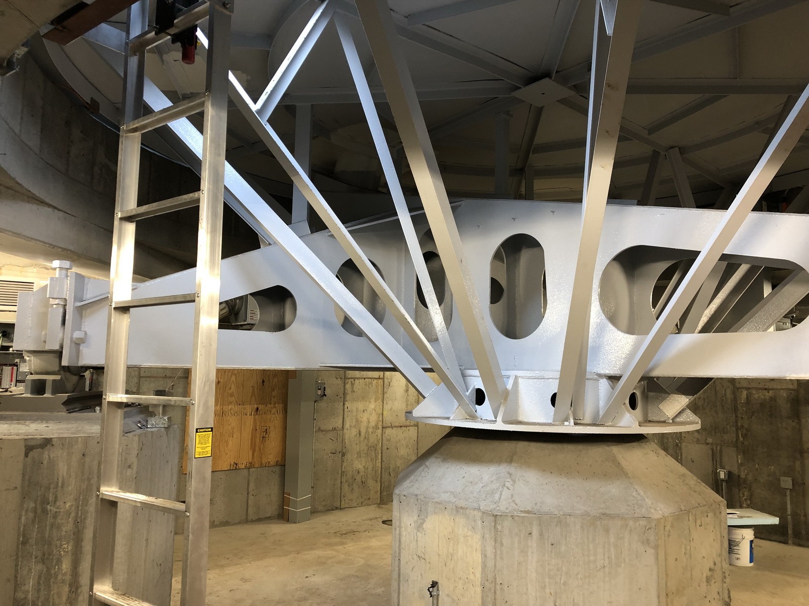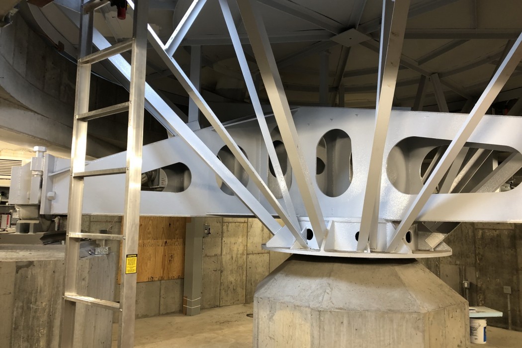 WJE was retained to perform an inspection of the support and operating machinery of the Babson College Globe. The globe is comprised of an approximately 28-foot-diameter steel sphere, which is supported in roller bearings on an inclined trunnion. It was known that at some point the lower trunnion bearing failed, causing damage to the operating machinery.