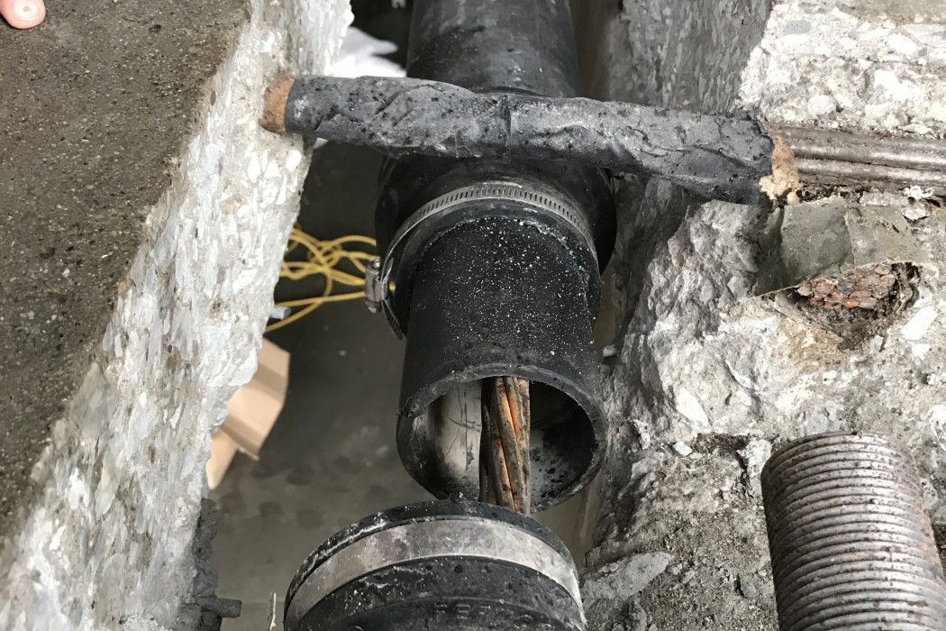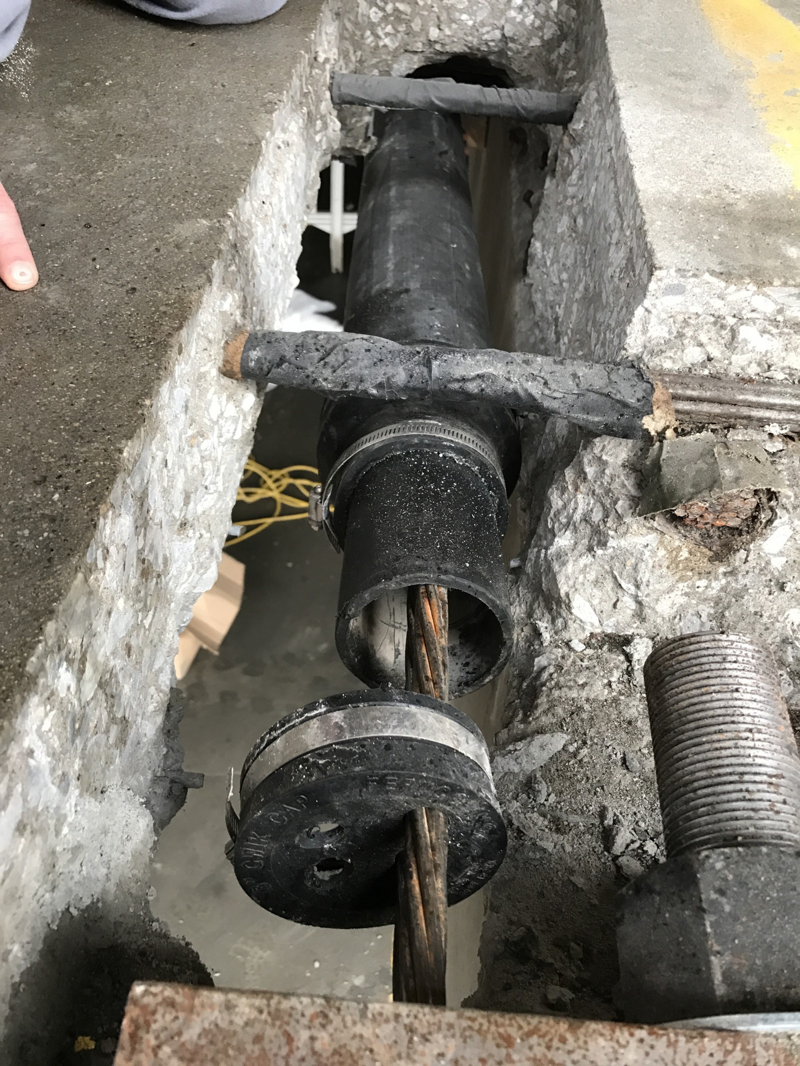 The Baltimore Avenue Parking Garage, located in Detroit’s New Center area, is a 270,000-square-foot split-level parking structure. It was constructed in 1964 with precast columns, precast and post-tensioned concrete single tee-beams, and post-tensioned concrete floor slabs that span between the single-tee beams. The supported one-way slabs are post-tensioned with an archaic paper-wrapped button-headed wire system. The ramps between levels are conventionally reinforced.
