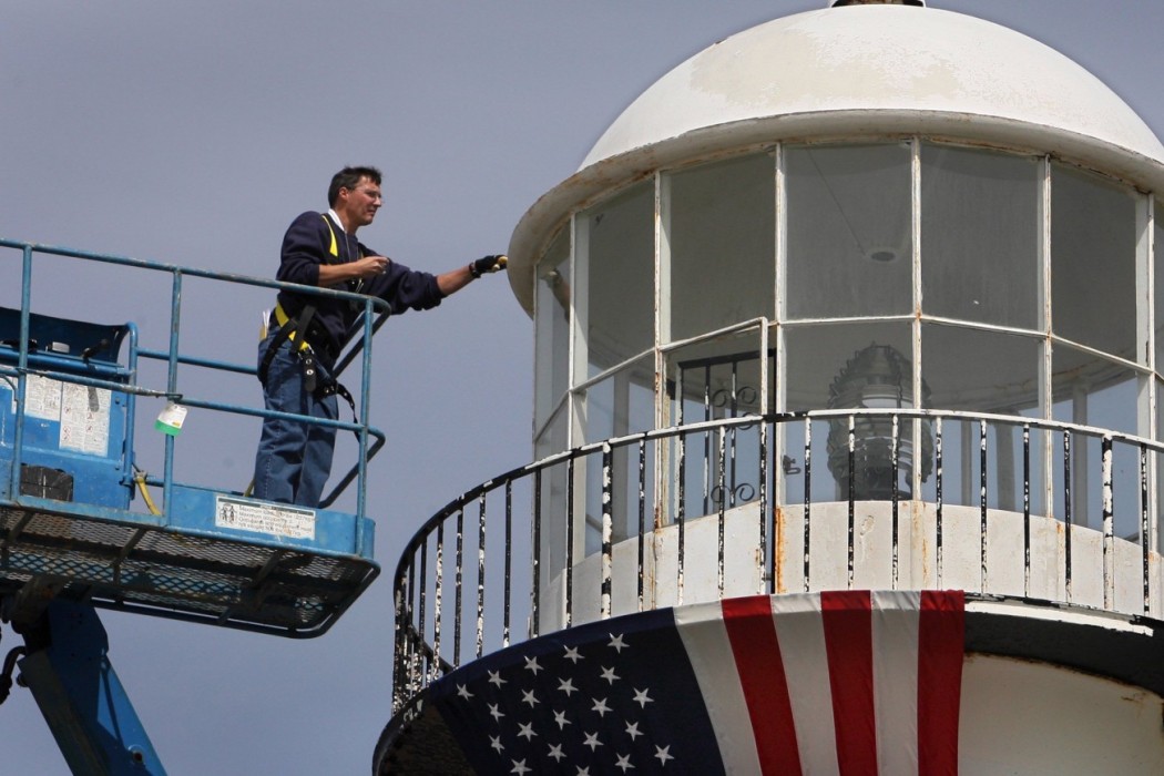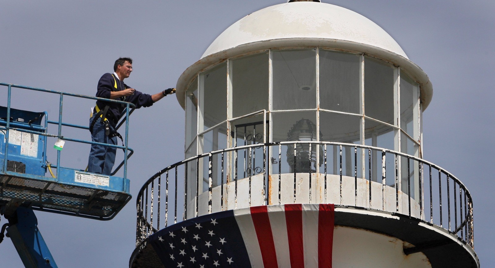 WJE found the historic lighthouse in remarkably good condition given its age and coastal location. To address some corrosion on the exterior and interior ironwork, WJE cleaned the cast and wrought iron, removed the existing coating, and recoated the surfaces. The team also inspected and repaired corroded and fractured elements of the spiral stair system and lantern components.