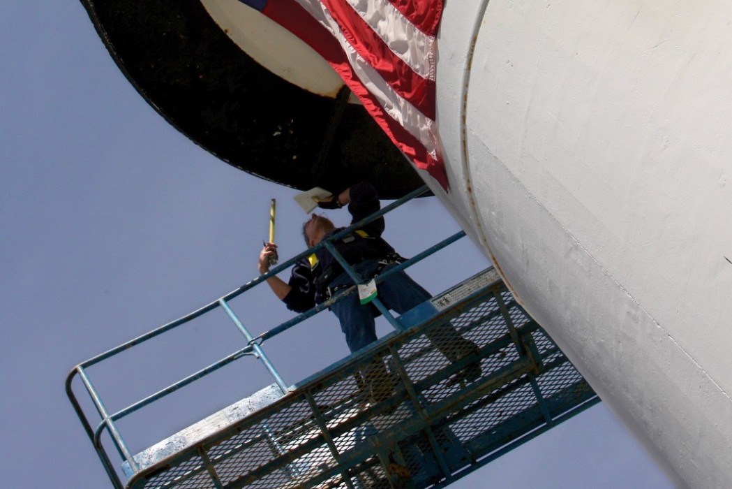 Shoring installation was necessary to support areas of potentially unsupported brick masonry. In addition, the team replaced or restored missing or displaced brickwork in the interior shaft near the base and at the top of the lighthouse.
