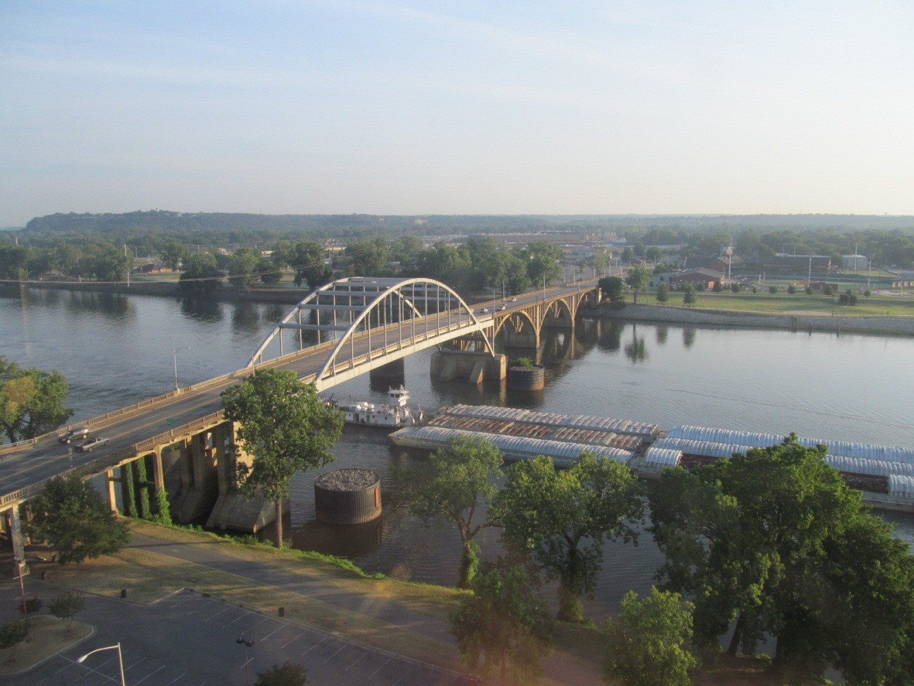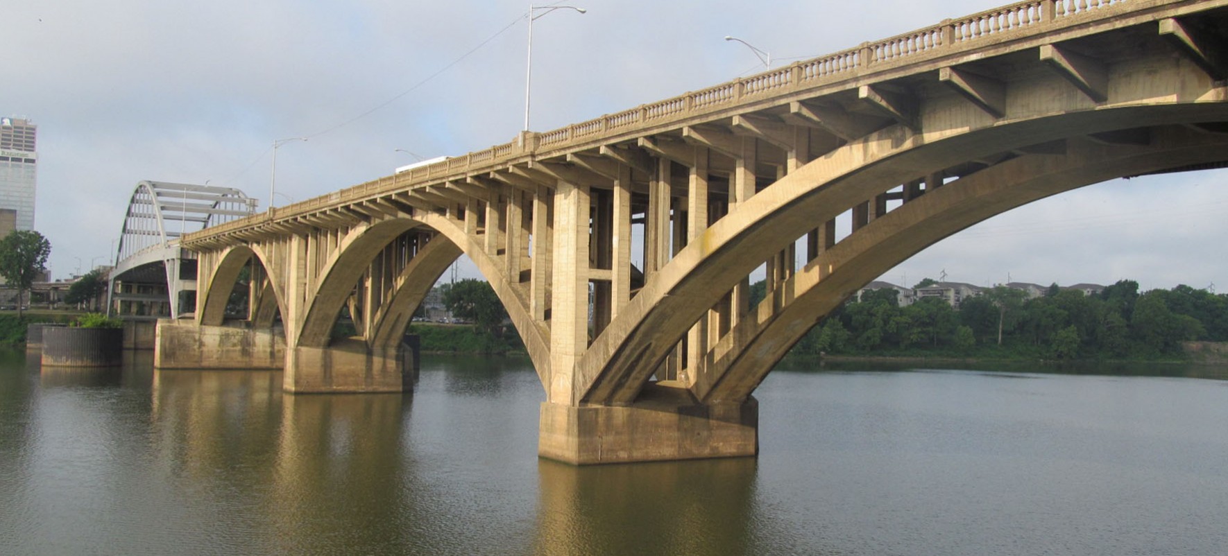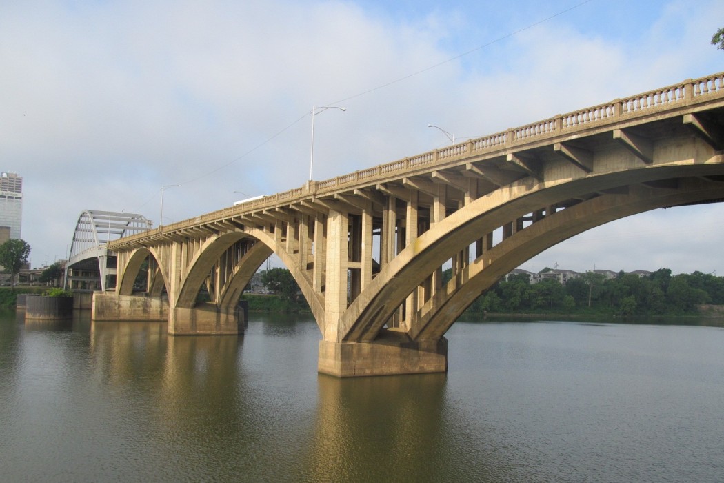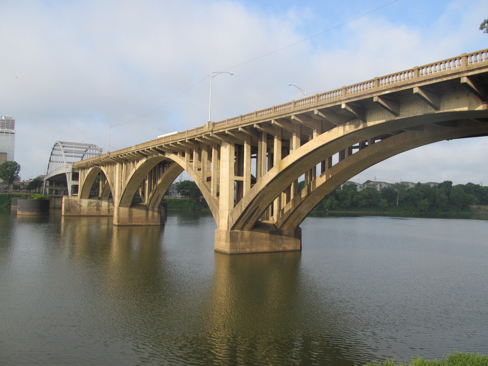 The original thirty-seven-span reinforced concrete Broadway Bridge was constructed in 1923 and spans across the Arkansas River between Little Rock and North Little Rock, Arkansas. In about 1970, the first two south river spans were replaced with a single steel tied arch span.