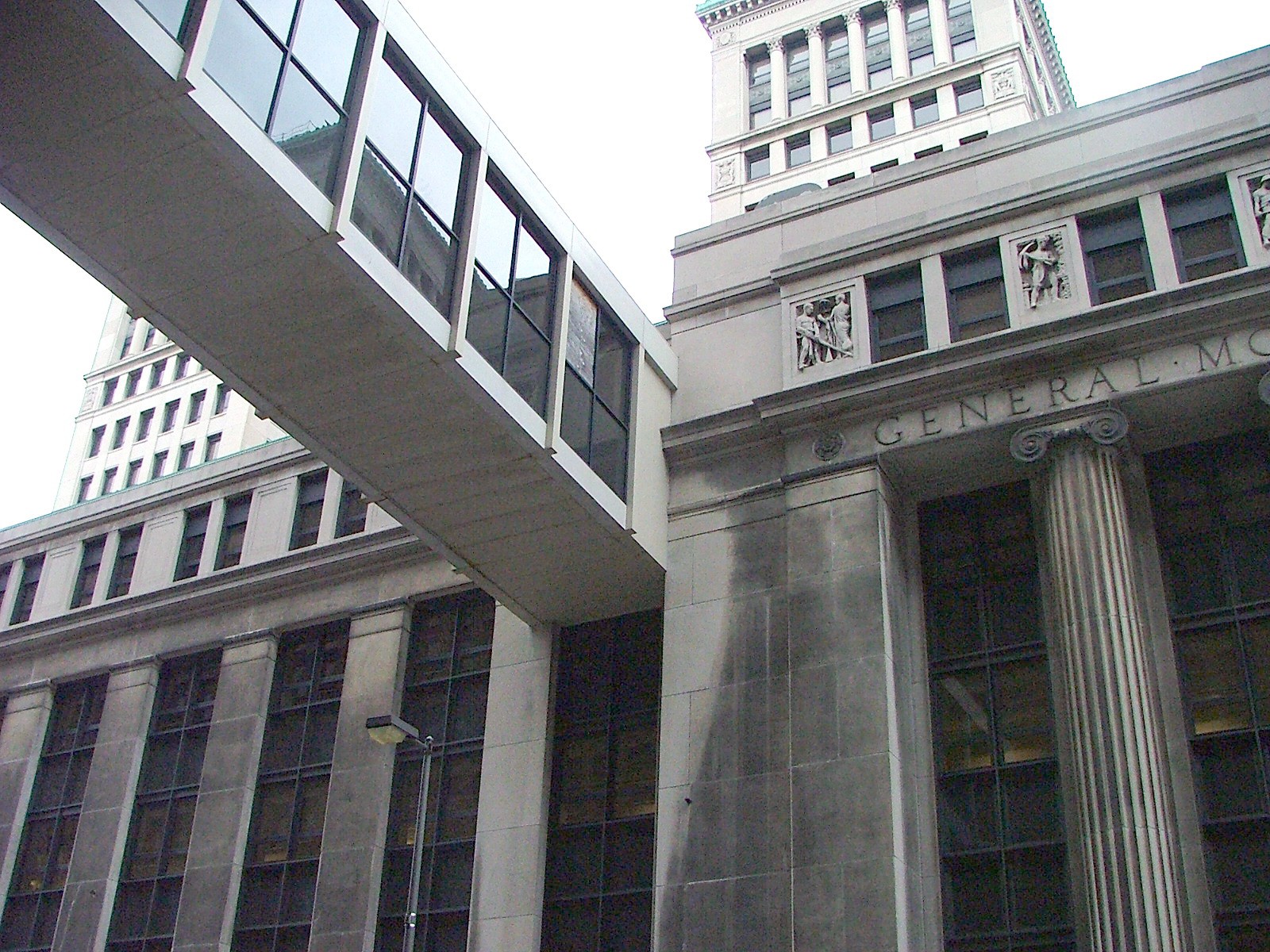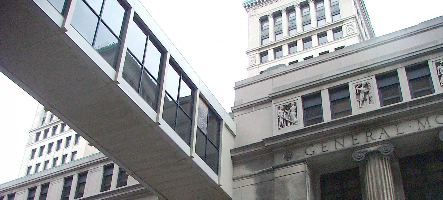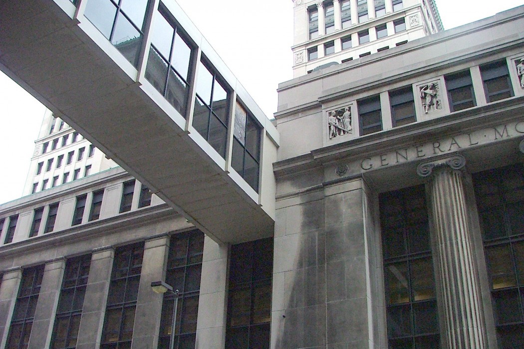Originally designed by Albert Kahn and listed on the National Register of Historic Places, the Cadillac Place Building (formerly known as the General Motors Building) was constructed in 1923 and served as the headquarters for the General Motors Company during the period when it became the leading automobile manufacturer in the United States. A five-story, steel-framed, limestone panel and custom fabricated window-clad structure known as the Annex borders the south end of the building. A fourth floor skywalk, added in the early 1940's, connects the Annex to the Argonaut Building across Milwaukee Street.