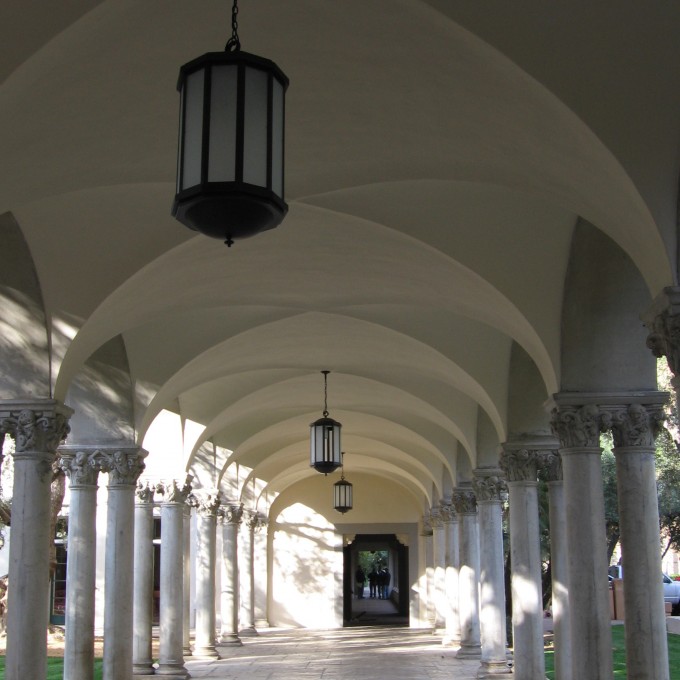 The "South Houses" are comprised of four individual undergraduate student houses interconnected by party walls, arcades, and open courtyards. The Houses were designed in the Mediterranean Revival style by architect Gordon B. Kaufmann and were constructed in 1931. The buildings are deemed eligible for the National Register of Historic Places.