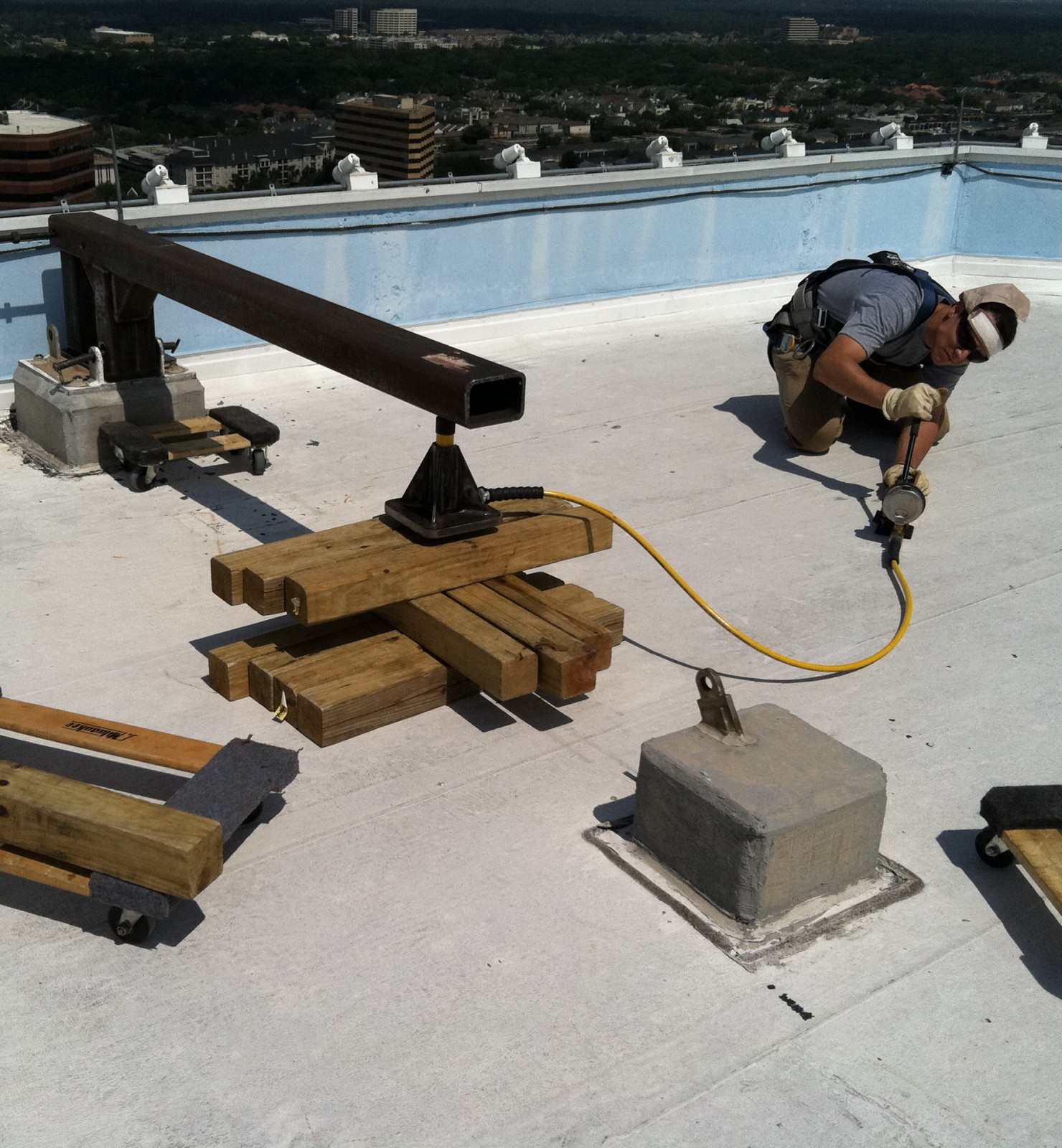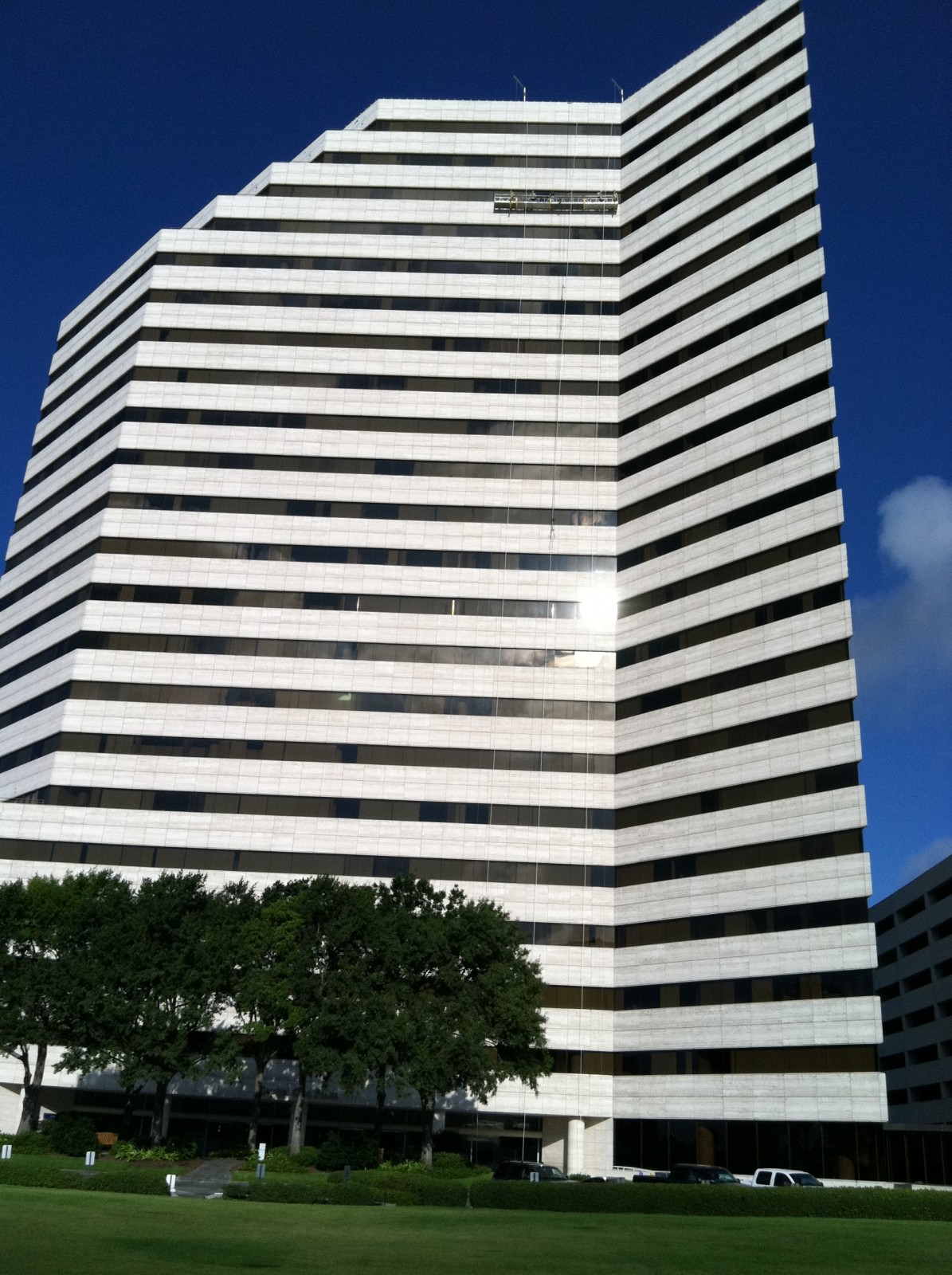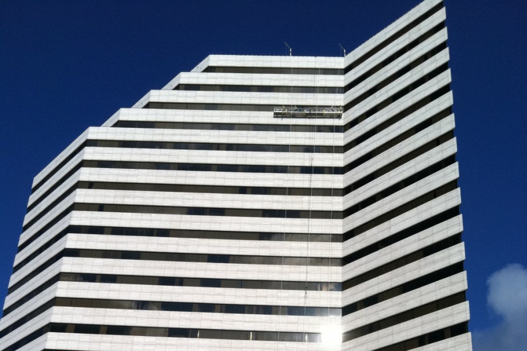 Capital One Plaza is a twenty-two-story building built in 1983. The facade access support system components consist of thirty-eight davit bases, forty-four fall arrest anchors, and two davits. At each location, the davit assembly can support contractor-provided transportable platform. Prior to WJE involvement, the fall arrest anchors were tested to 2,500 pounds, which is half of what OSHA 1910.66 requires for one lifeline connection. Also, the davits and davit bases were tested to 1,250 pounds, which is just above the 1,000 pound-rated load of the hoists. The davits and davit bases should be tested to four times the rated load of the hoist per 29 CFR OSHA 1910.66 (applies only to maintenance activities like window washing).
