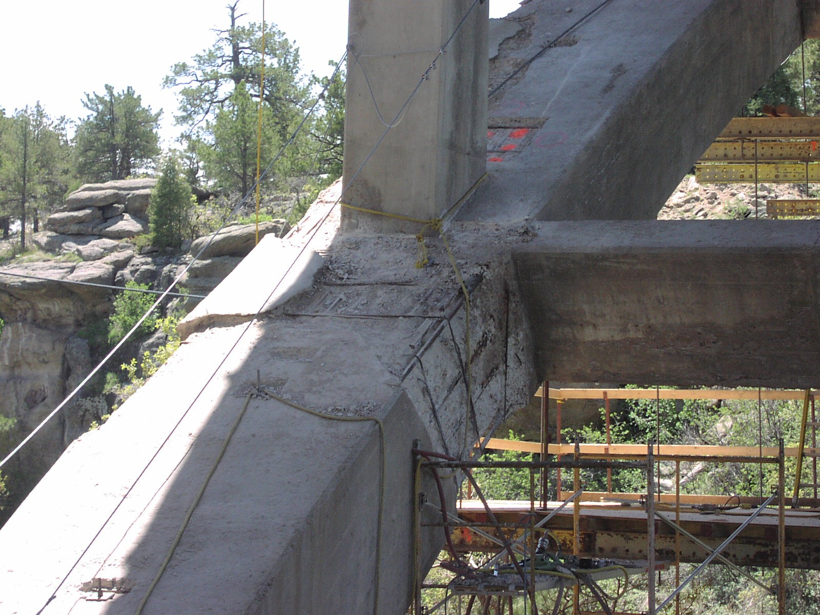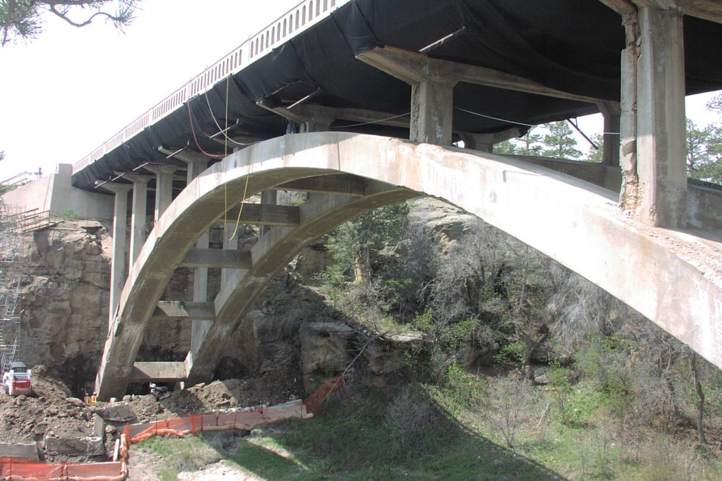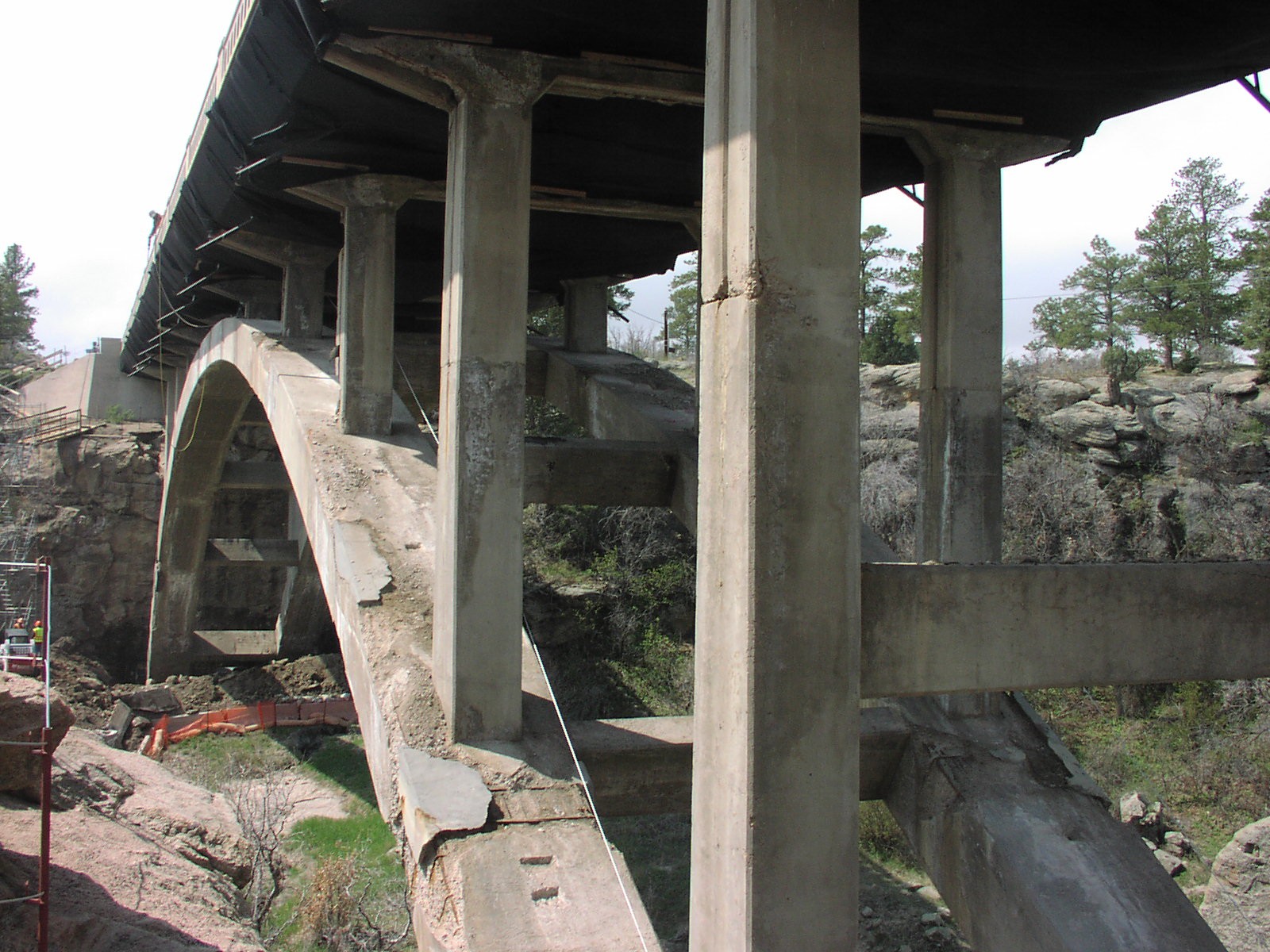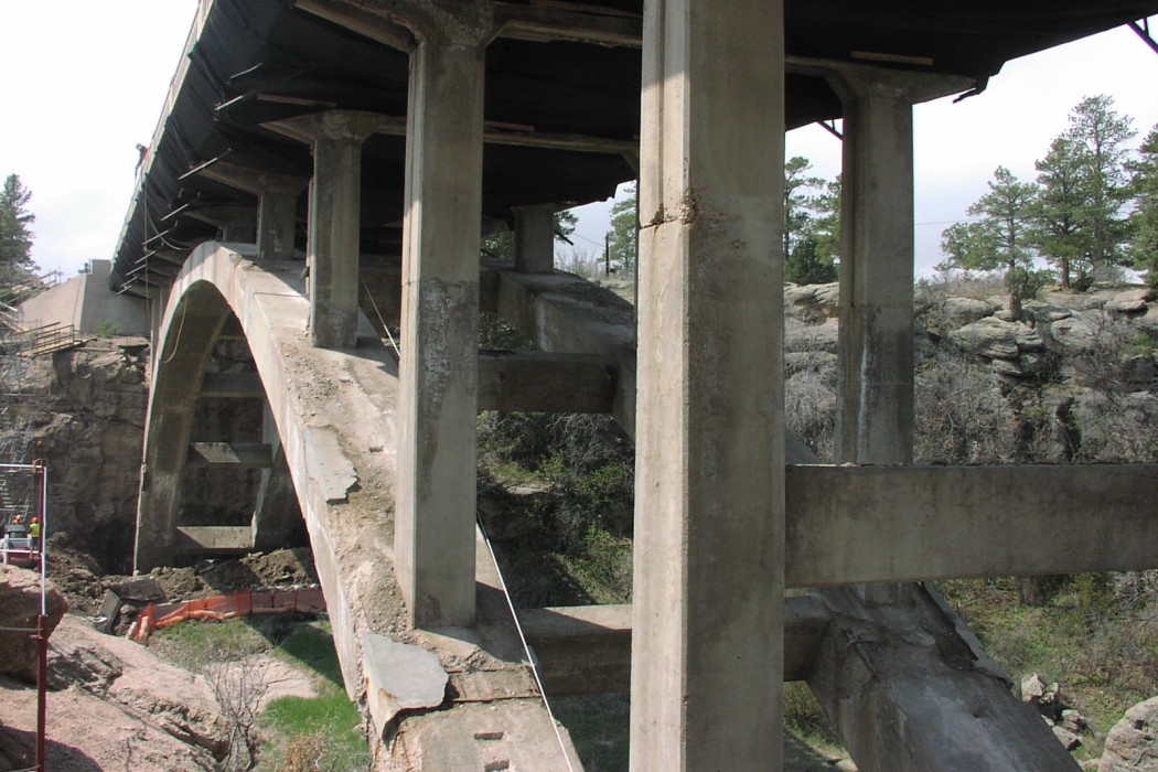 The bridge had sustained extensive deterioration of the concrete and reinforcing steel as a result of chronic, long-term exposure to moisture and deicing salts. Repair required the removal of unsound concrete behind the reinforcing steel for substantial distances along the lengths of the arches, potentially weakening the affected members during construction. Repairs were further complicated by a requirement to keep the bridge open for limited public traffic during repairs and the need to support heavy construction equipment, such as cranes and concrete trucks.