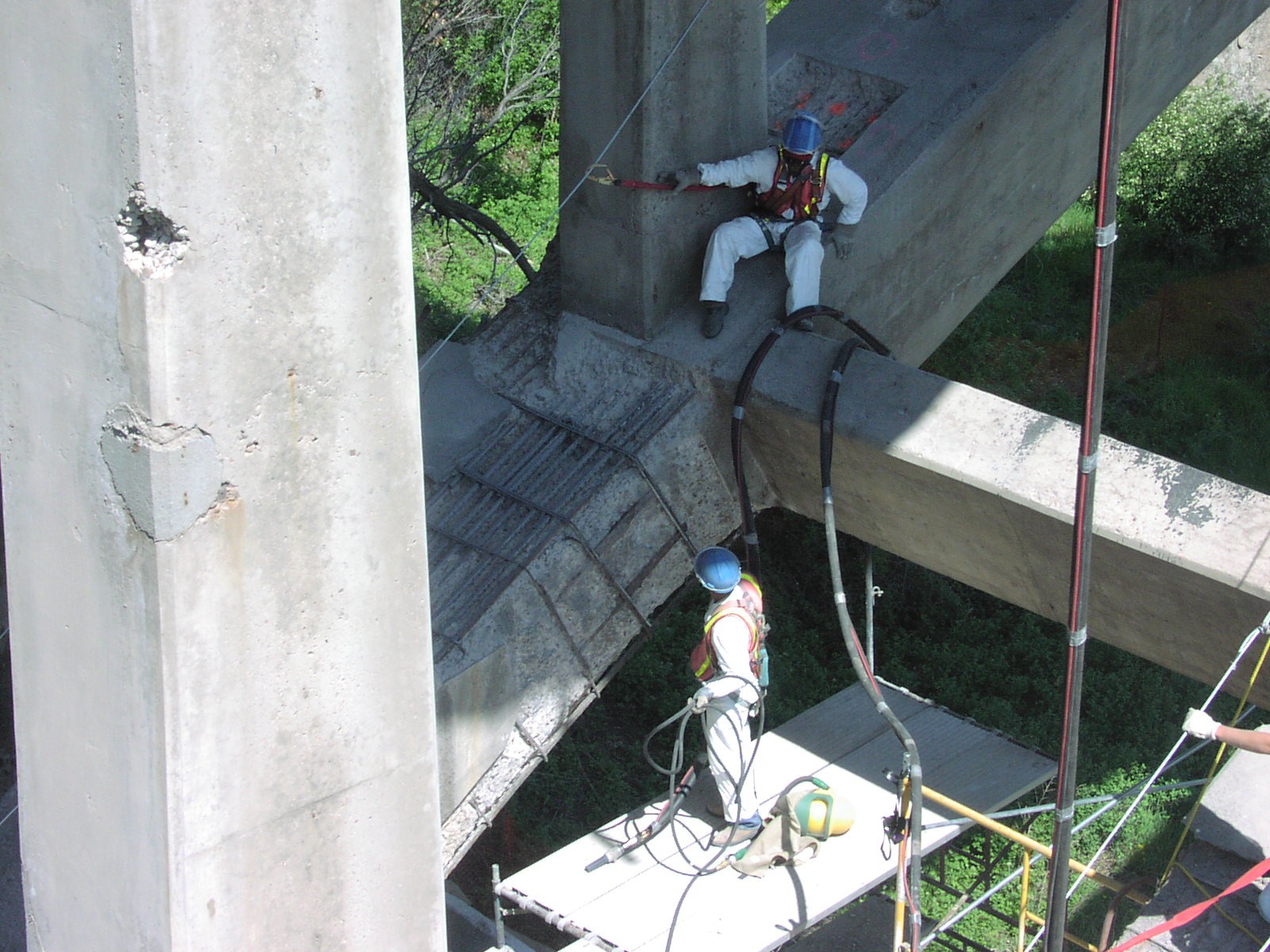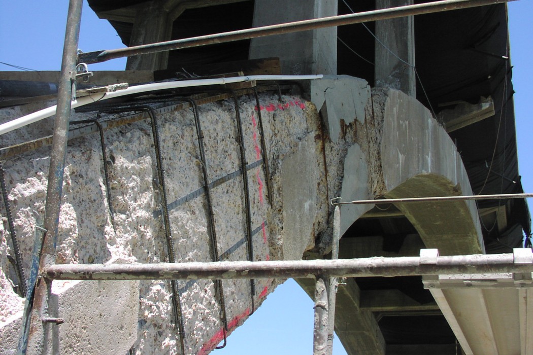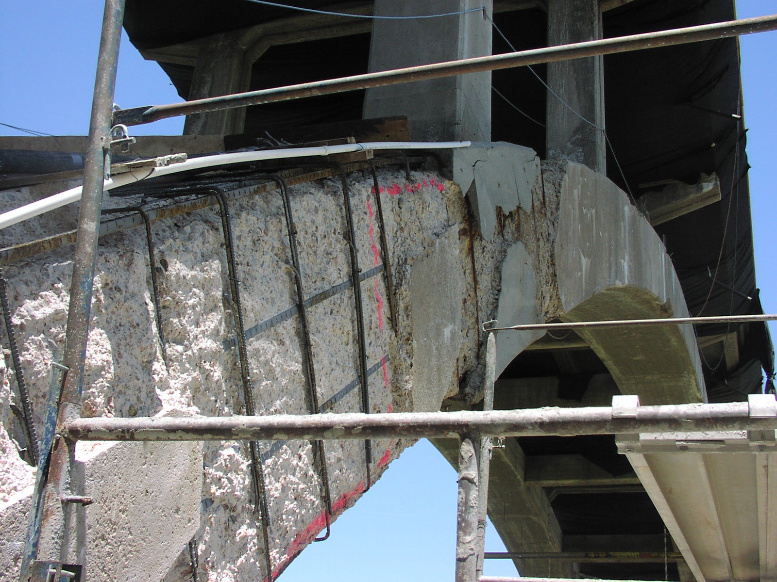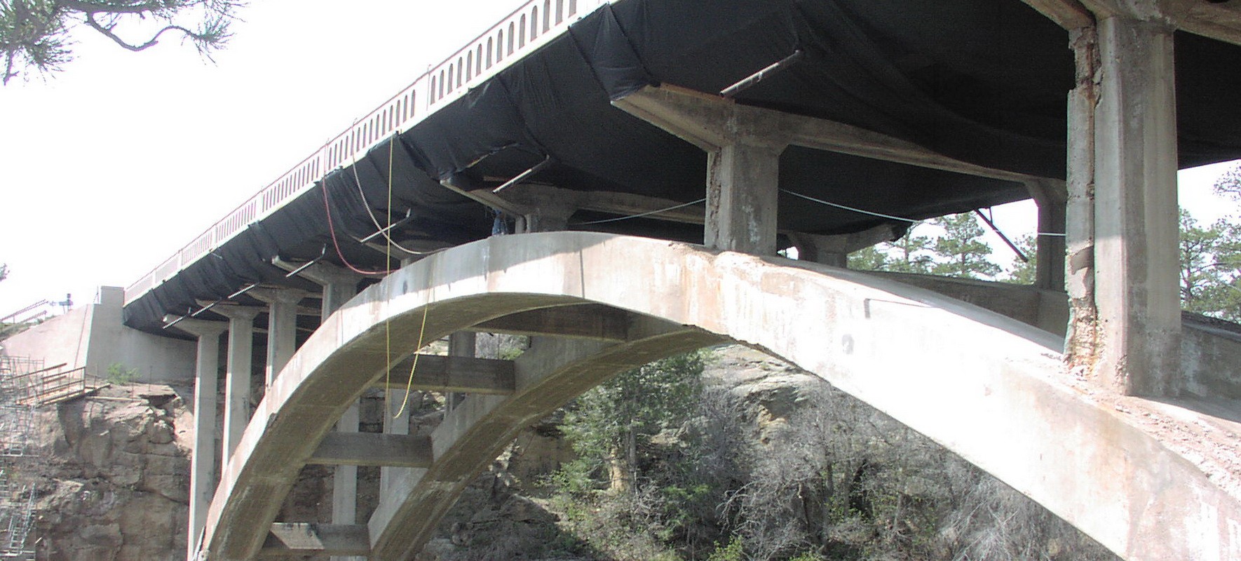 The bridge had sustained extensive deterioration of the concrete and reinforcing steel as a result of chronic, long-term exposure to moisture and deicing salts. Repair required the removal of unsound concrete behind the reinforcing steel for substantial distances along the lengths of the arches, potentially weakening the affected members during construction. Repairs were further complicated by a requirement to keep the bridge open for limited public traffic during repairs and the need to support heavy construction equipment, such as cranes and concrete trucks.