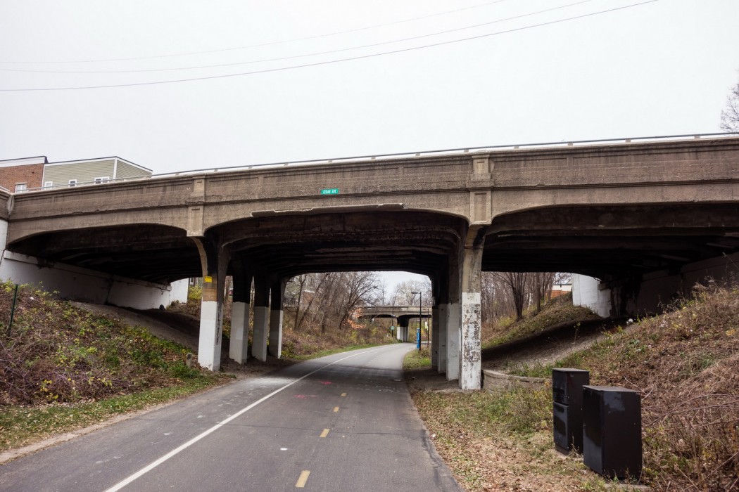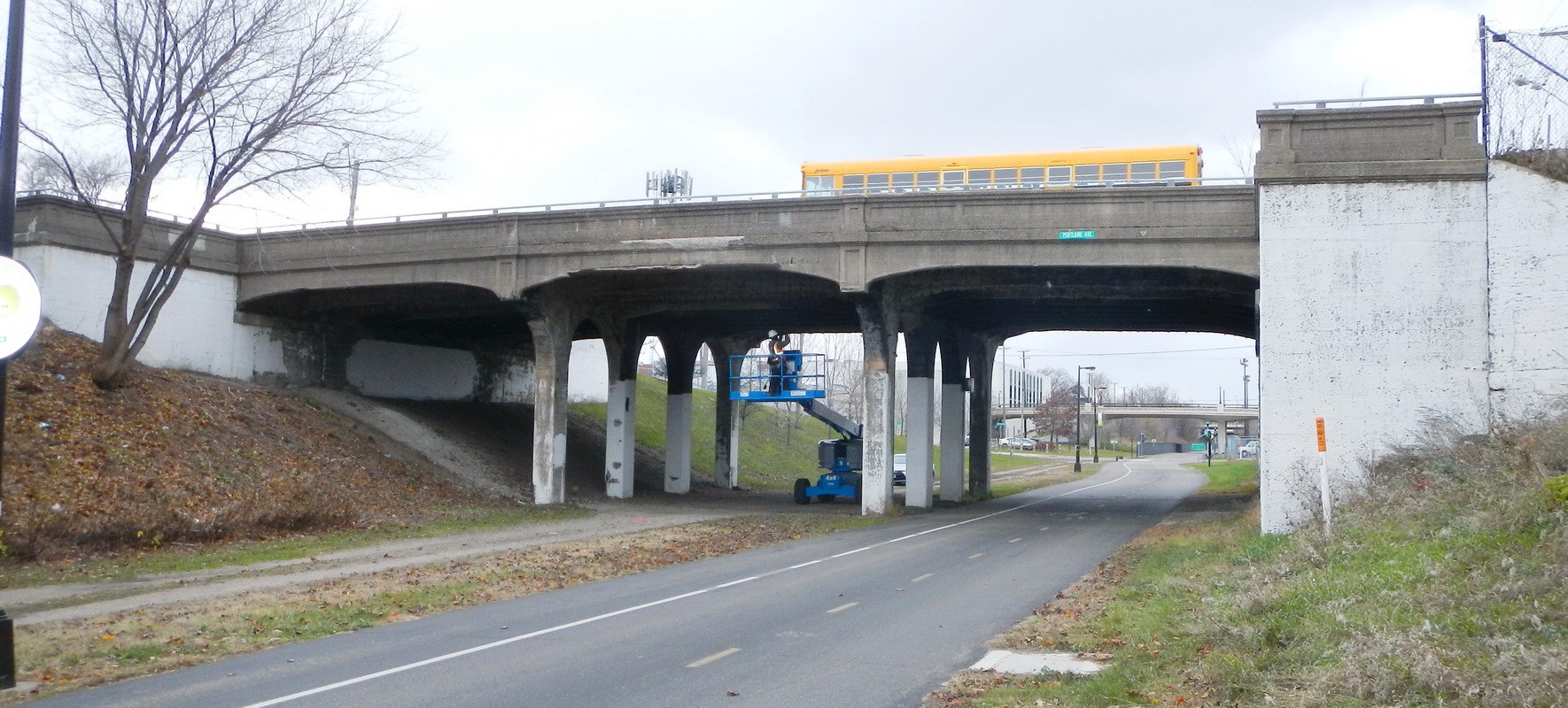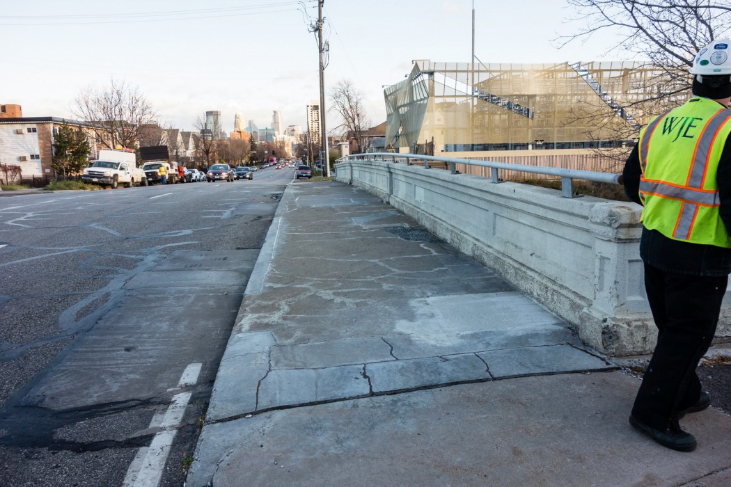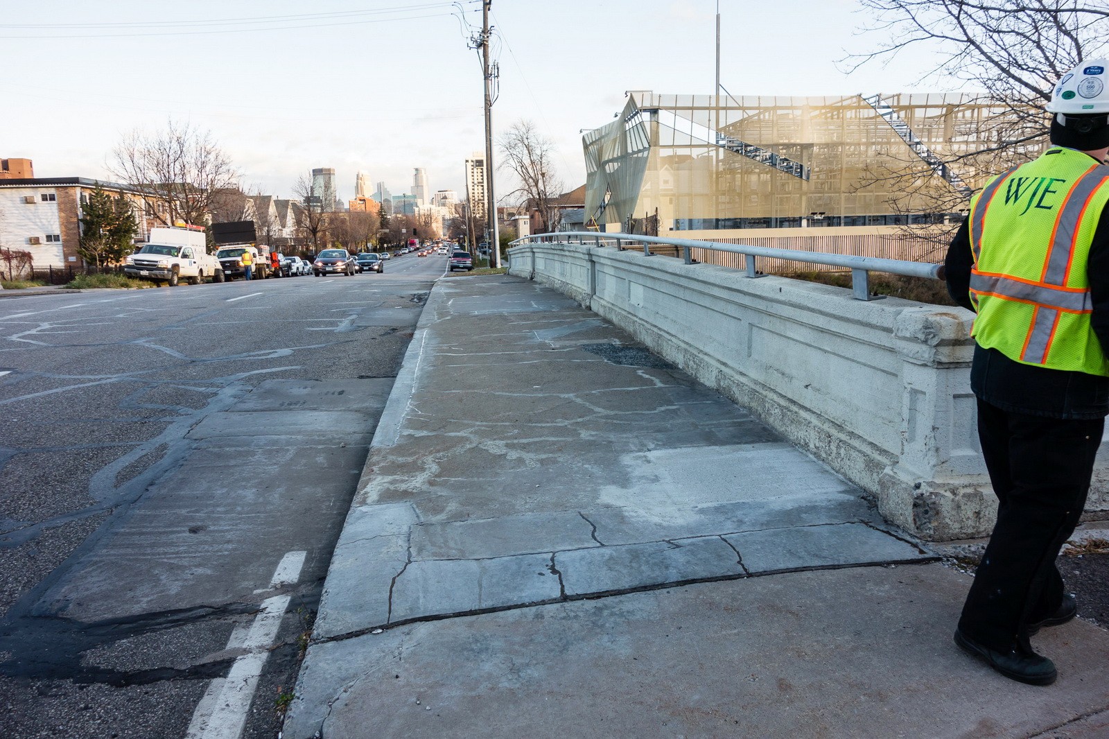 The Cedar Avenue South and Portland Avenue South Bridges are historic concrete, three-span continuous, multi-beam structures that are structurally deficient. Past bridge inspection reports and structural assessments performed by others reported the bridges to be in poor condition and continuing to deteriorate. The County needed to determine if structural rehabilitation or replacement represented the best way forward. The historic character of the structures and surrounding district would also need to be considered. The structures cross the 29th Street Greenway and are part of twenty-seven bridges that contribute to the CM&StP Railroad Grade Separation Historic District. The total length of each is about 100 feet (Cedar Bridge) and 93 feet (Portland Bridge).