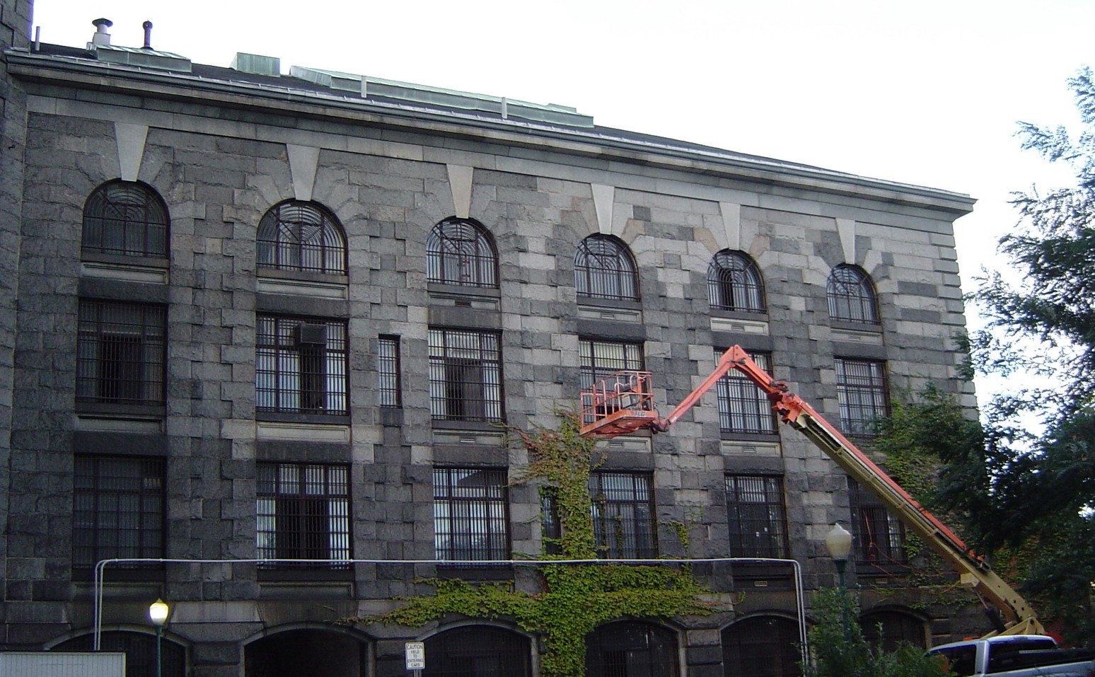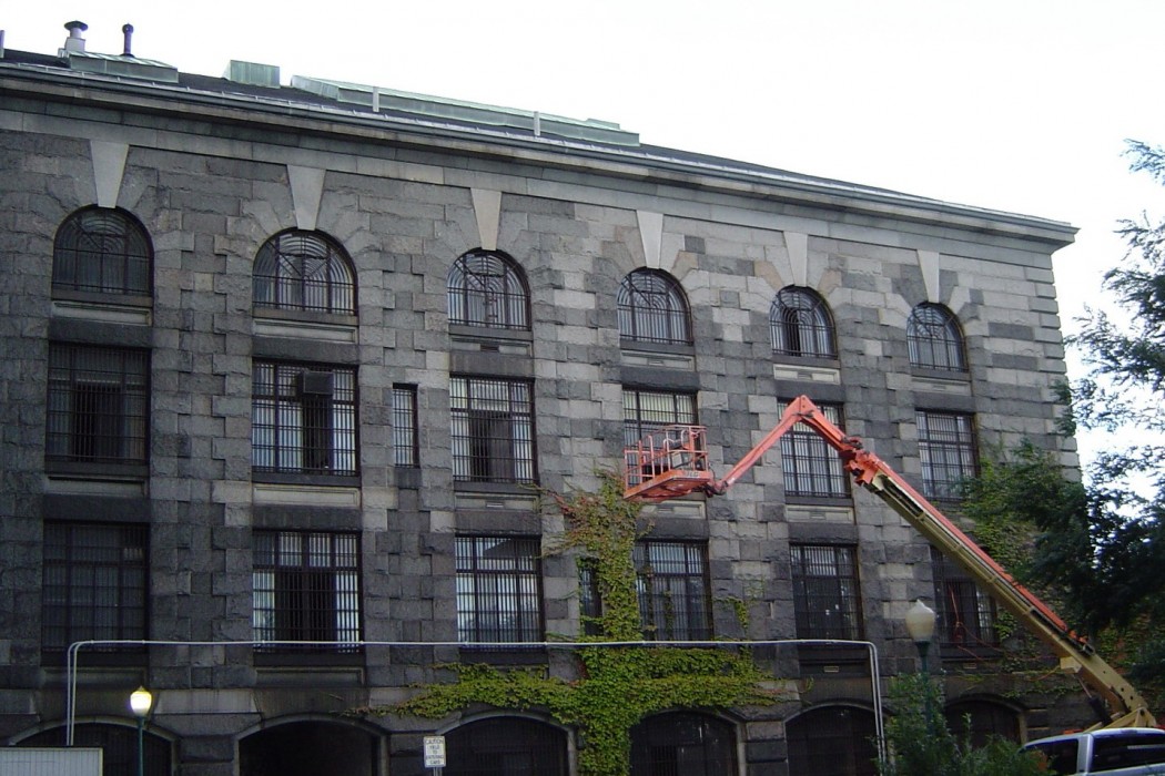 The Charles Street Jail is a historic landmark in Boston that was being converted into a hotel as part of an area redevelopment project. Construction of the main building was completed in 1851. The west wing was reportedly built circa 1921. The roof of the west wing is supported by a concrete roof deck on structural steel trusses.