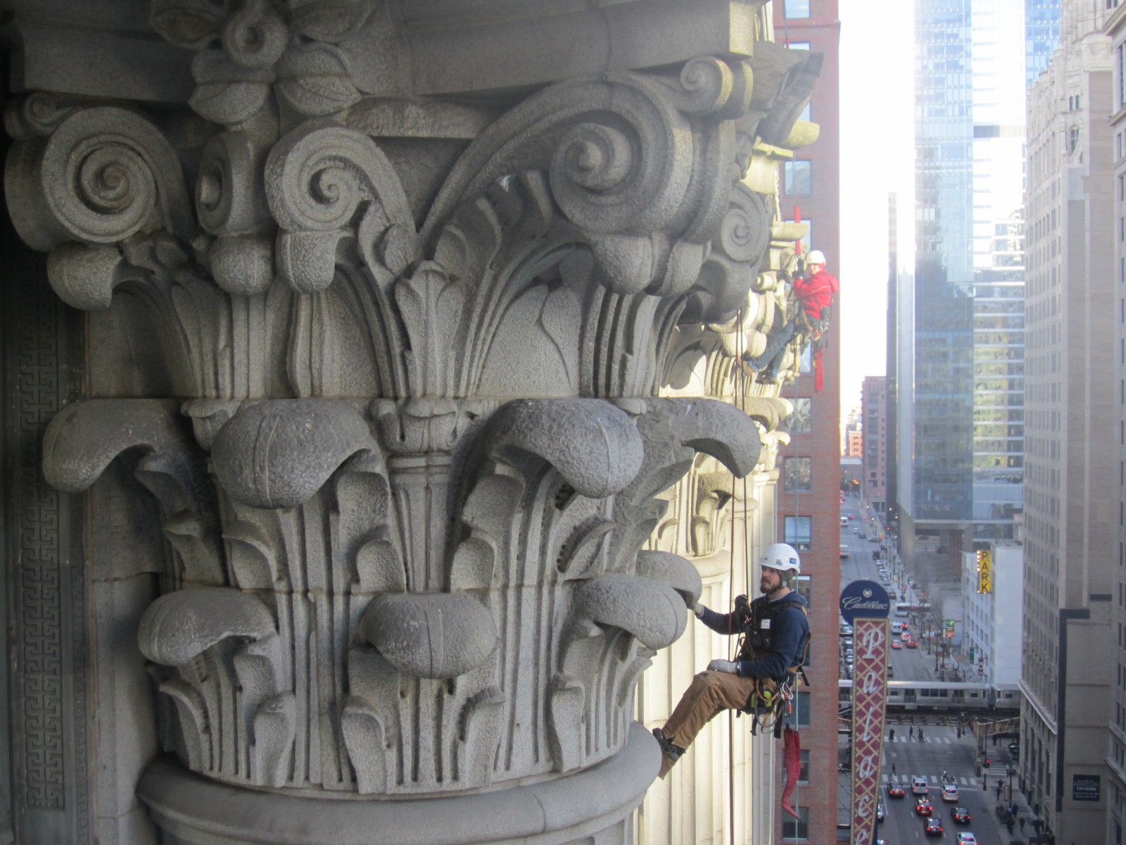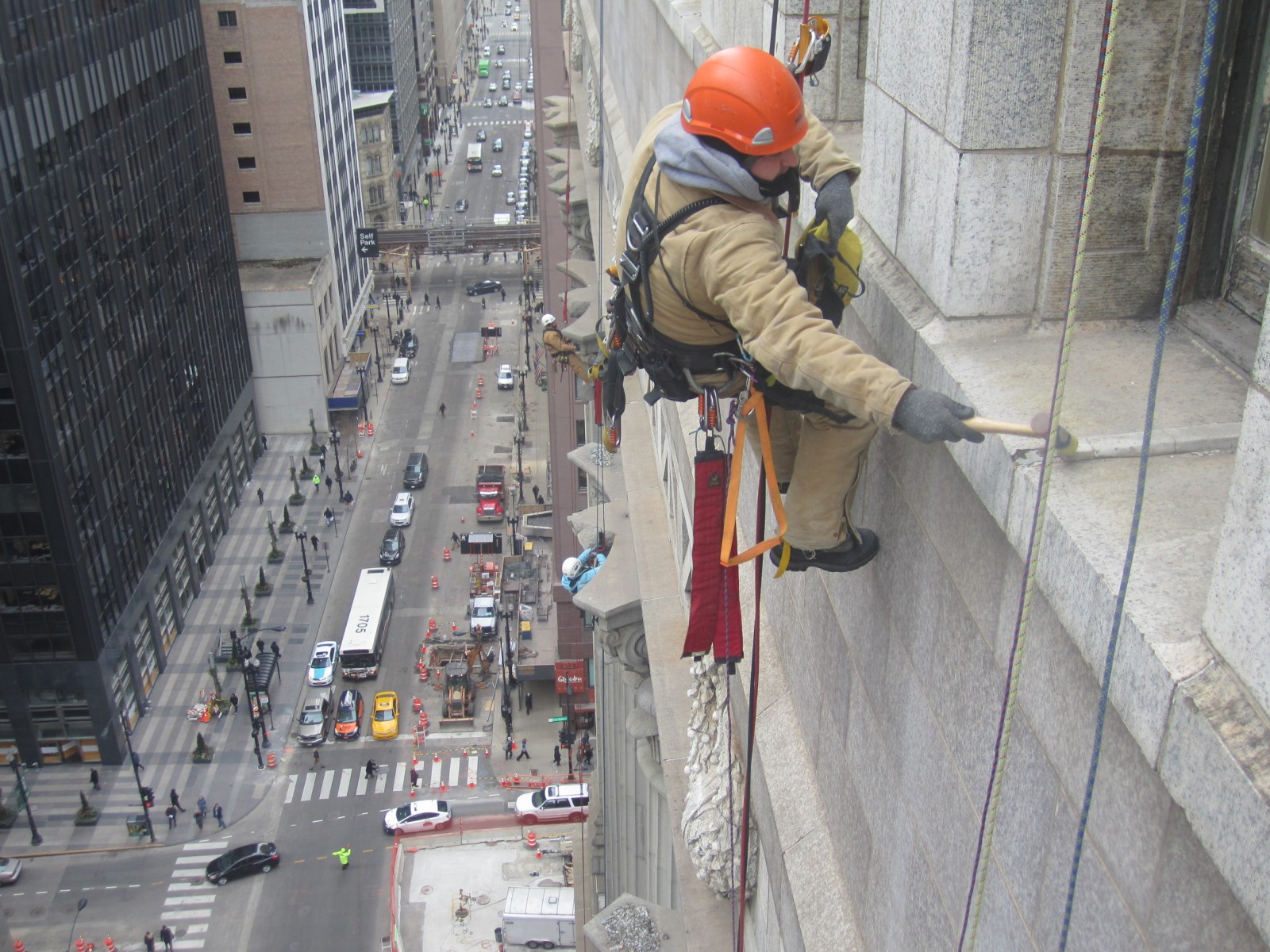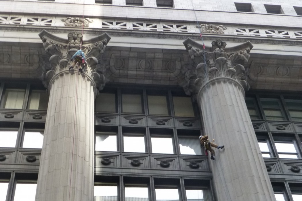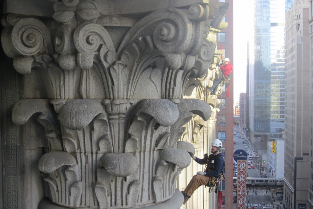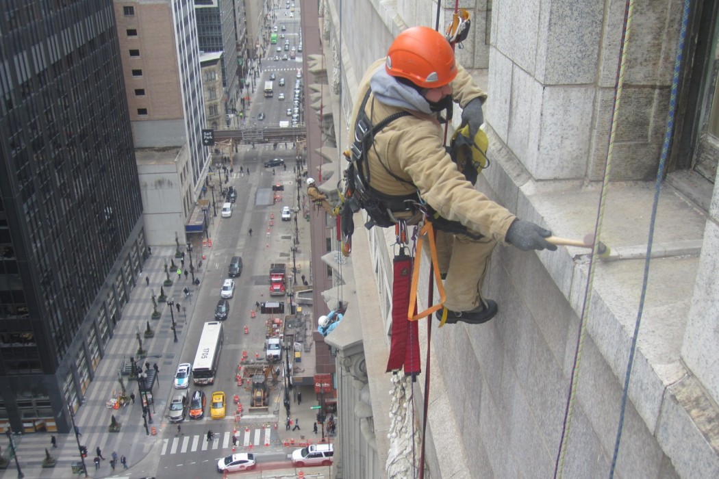 As part of ongoing facade maintenance program, WJE performed an investigation to evaluate the existing conditions and causes of observed distress on the exterior terra cotta, granite, and brick masonry facade areas.