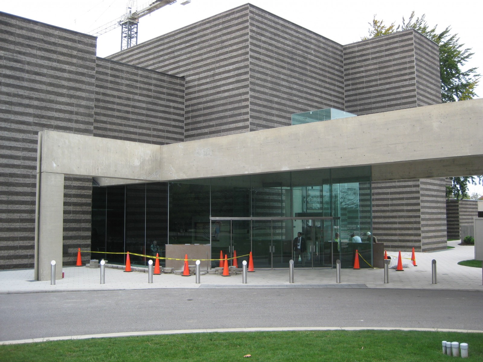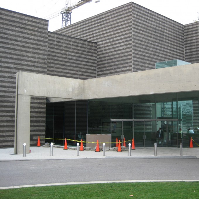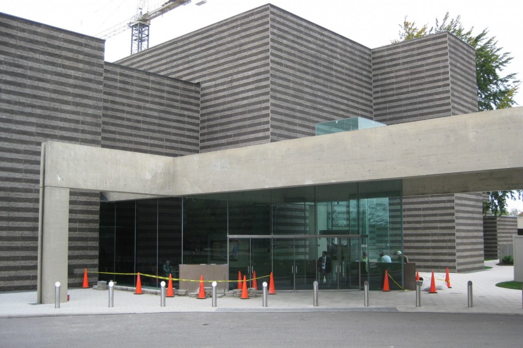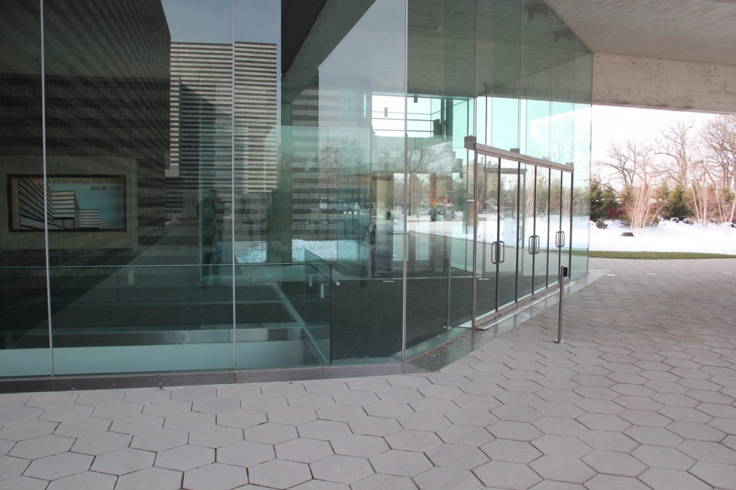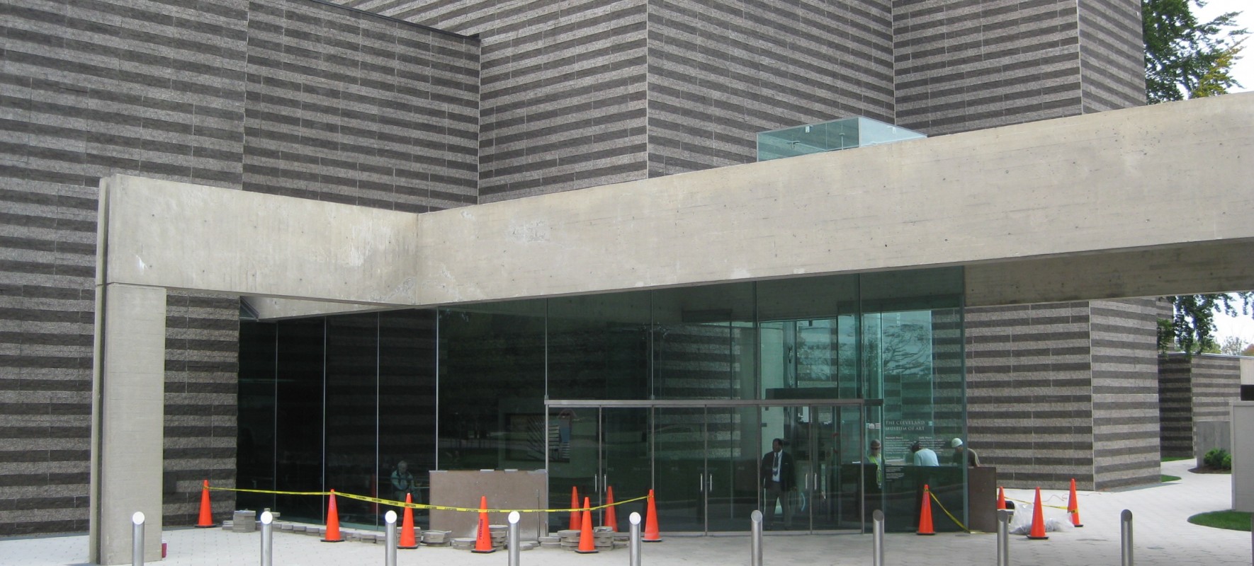 The original CMA building was constructed in 1916. The Breuer Building, designed by renowned architect Marcel Breuer, was added in 1971 and has granite cladding on precast concrete panels. As part of a renovation and expansion project, the main entrance to the Breuer Building was renovated to include an expanded grade-level custom glass entry vestibule and a below-grade pedestrian tunnel connecting the museum to an adjacent parking garage. The roof and walls of the new entrance lobby abut the existing granite cladding.