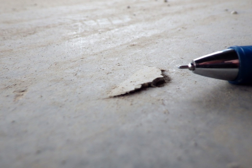 Isolated concrete pop-outs were discovered in the surface of the soil-supported concrete slab during tenant finish out. While the distress was not operationally significant to the first tenant, leasing to subsequent tenants required that the cause of the distress be understood and that the slab be repaired or replaced, depending on future occupancy.