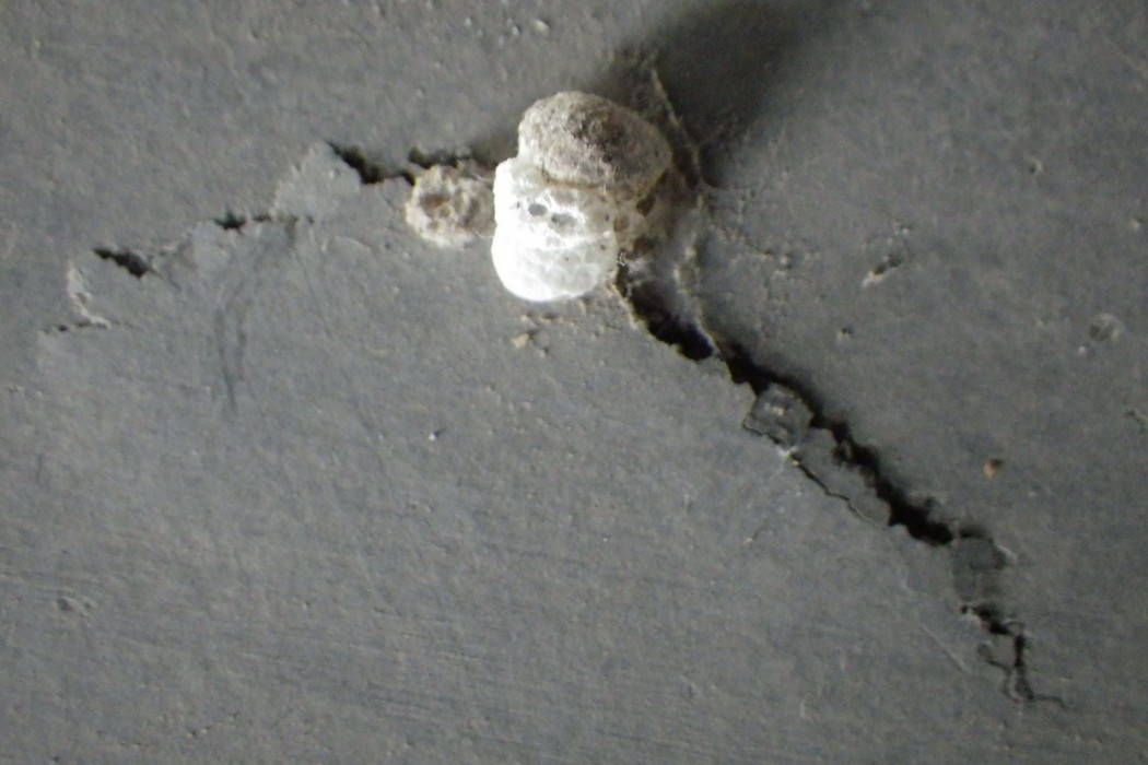 WJE performed a visual survey of the building slab. Samples of the exudations were gathered, concrete cores were extracted, and soil samples beneath the slab were obtained. These samples and cores obtained by the owner previous to WJE’s investigation were examined at WJE’s Janney Technical Center in Northbrook, Illinois. Samples of the exudate were analyzed using a scanning electron microscope equipped with an energy dispersive x-ray spectrometer (SEM/EDS) to assess composition.