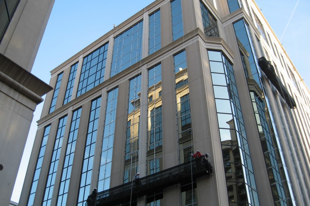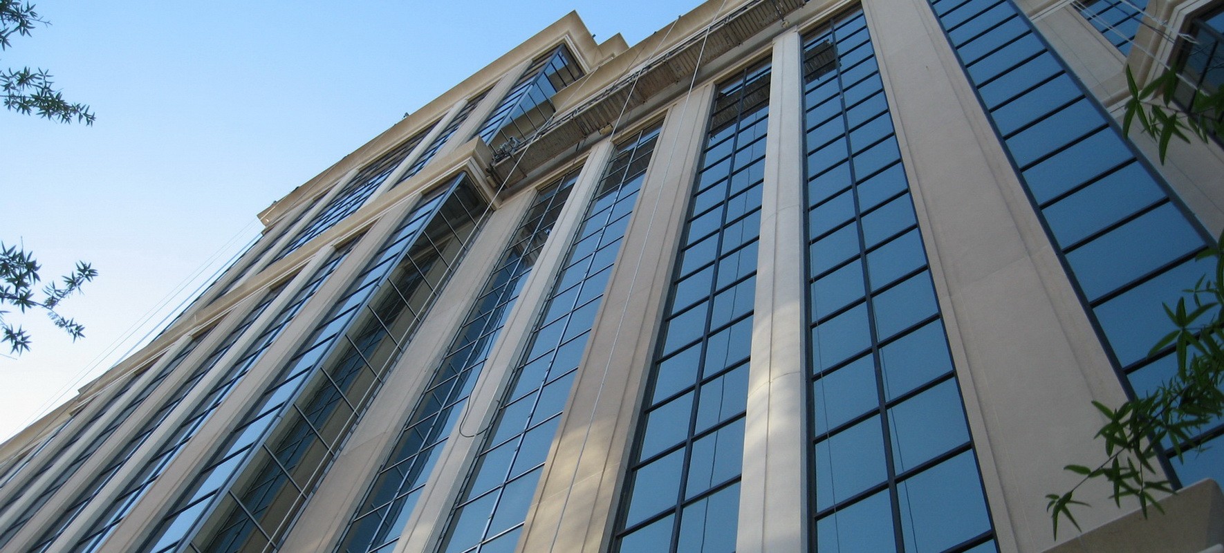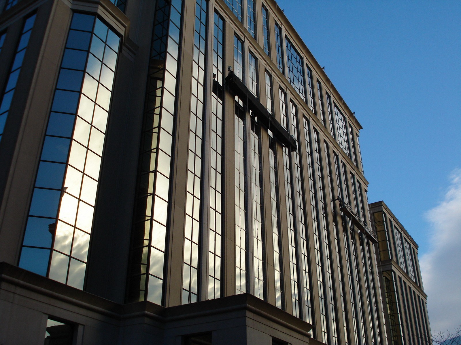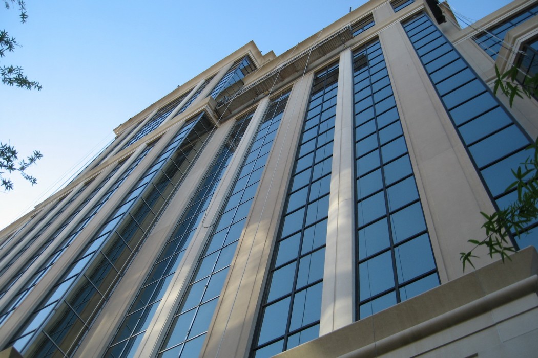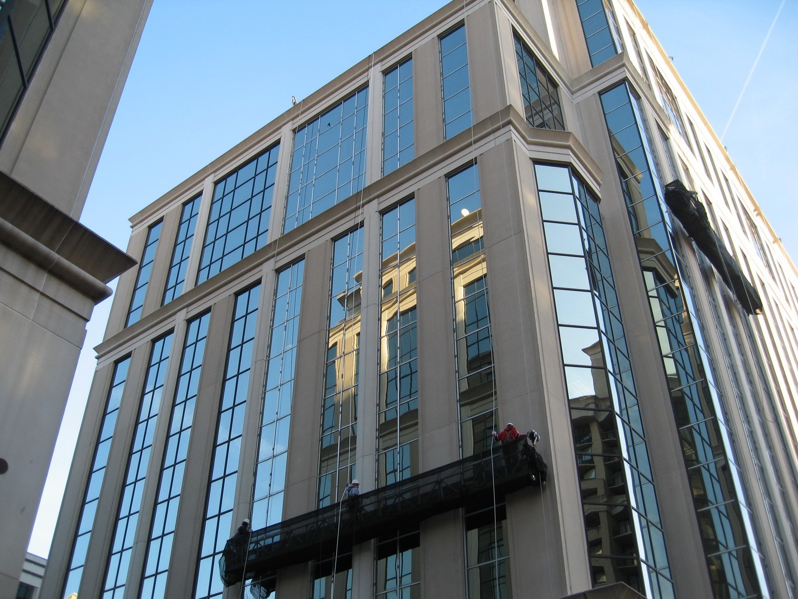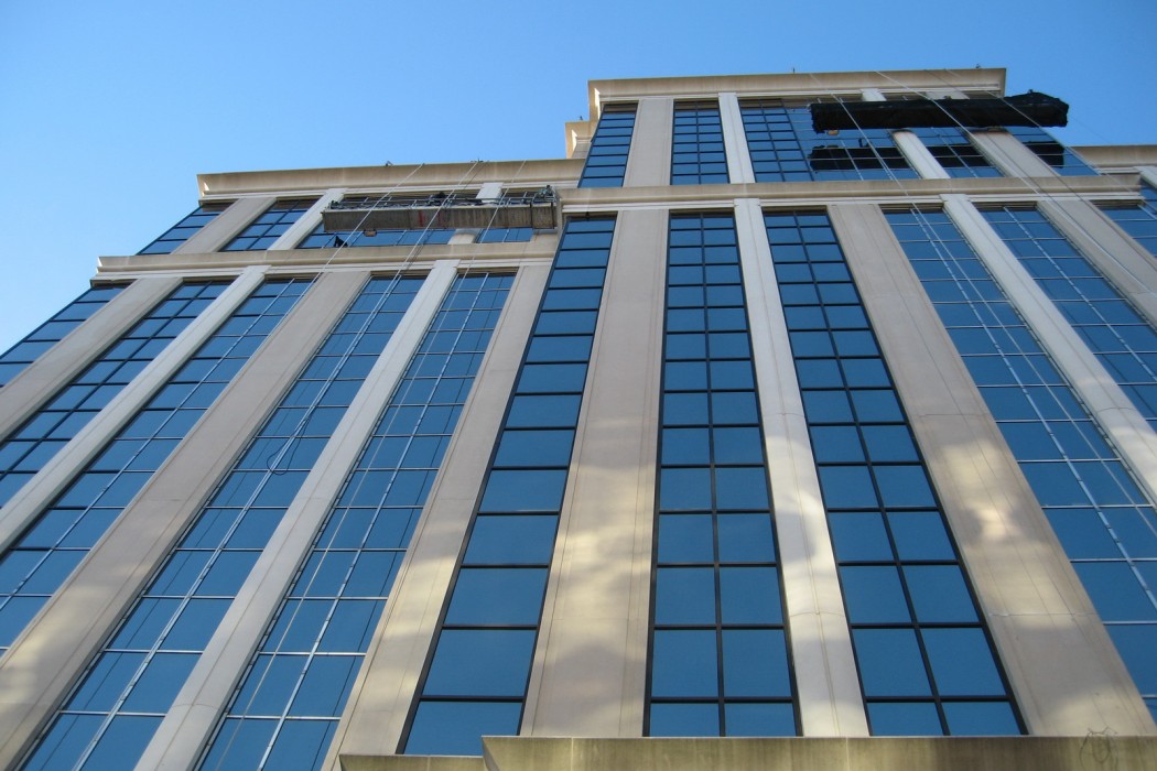 Originally constructed between 1988 and 1990, the buildings that comprise the Courthouse Plaza One and Two properties consist of two adjoining, fourteen-story mid-rise office buildings located at 2100/2200 and 2300 Clarendon Boulevard in downtown Arlington, Virginia. Architecturally, the buildings are distinguishable primarily for their use of vertically oriented, glazed aluminum curtain walls set between alternating sections of architectural precast concrete panels and a series of projecting, precast concrete cornices. Courthouse Plaza had been experiencing rainwater penetration through the exterior wall assemblies on all elevations for several years.