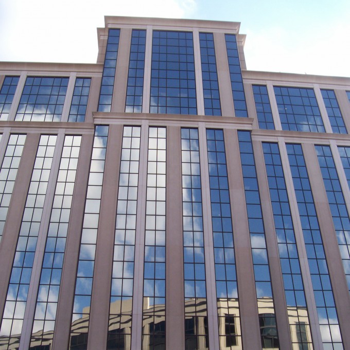 WJE conducted a close-range, exterior visual condition assessment of representative samples of the glazed aluminum curtain wall and adjacent precast concrete wall panels. The investigation included field testing for water penetration resistance at numerous locations throughout the property. As a result of this investigation, WJE determined that water leakage was attributed to widespread failure of the exterior weather seals at the precast concrete panels and curtain wall perimeters as well as the inability of the curtain wall assembly to properly manage water internally. To solve both problems, WJE developed repair documents to competitively bid building-wide sealant replacement as well as a conversion of the drained curtain wall assembly to a barrier system. WJE's repair design and implementation addressed the uncontrolled rainwater penetration while remaining within the client's project budget.