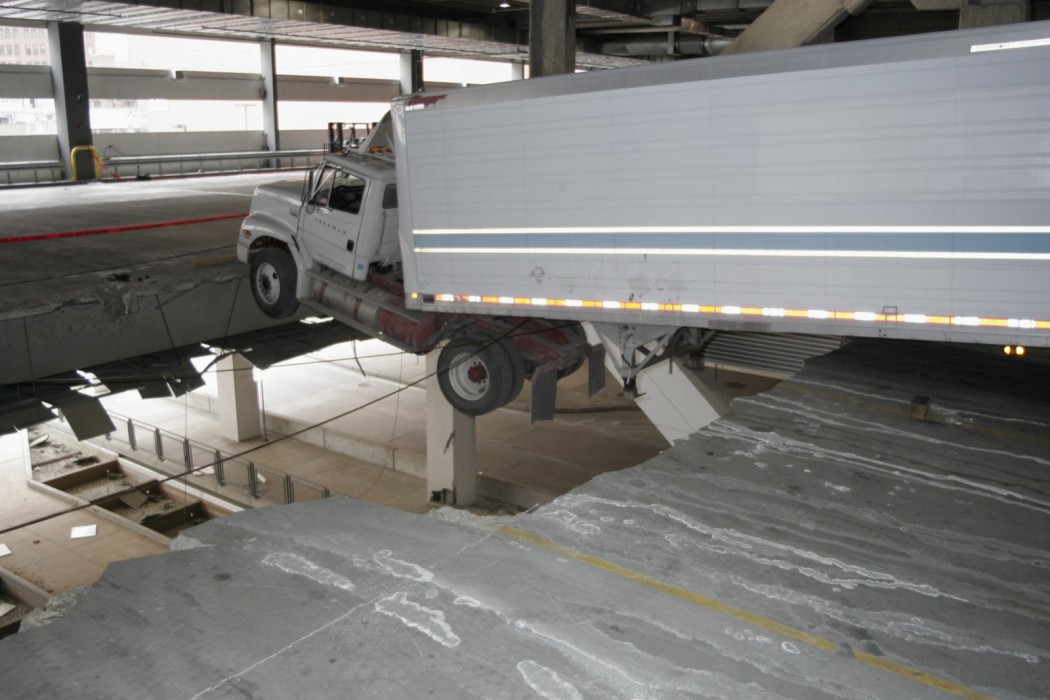 On February 5, 2007, a 30- by 59-foot portion of the second-floor loading dock collapsed at the David L. Lawrence Convention Center. While no one was injured as a result of the collapse, a manlift parked on the loading dock fell through the hole onto the street below, and a tractor-trailer truck sank into the hole and became wedged between the remaining concrete slabs on the loading dock. The SEA needed engineers to investigate the cause of the collapse and determine whether the rest of the building was at risk of a similar failure.