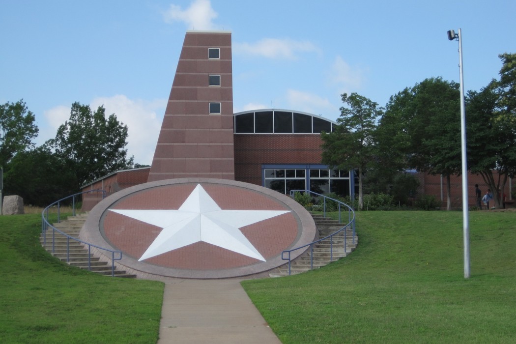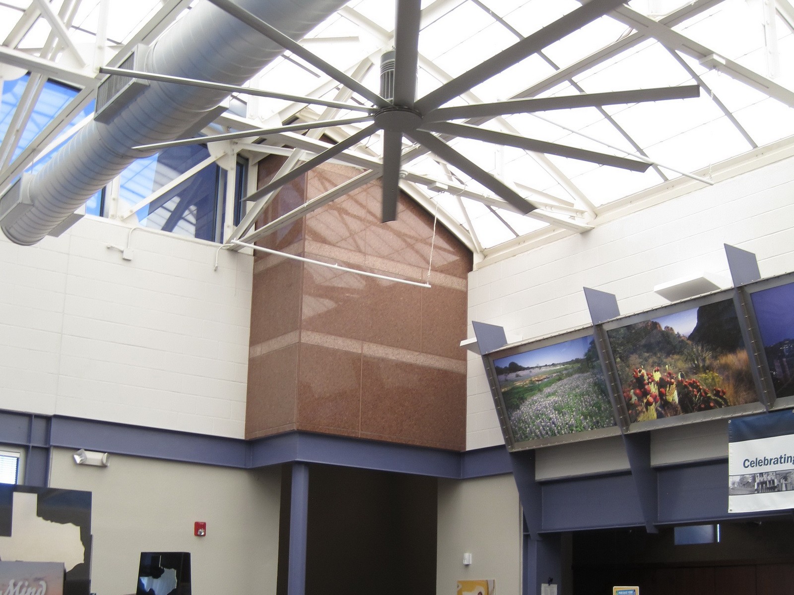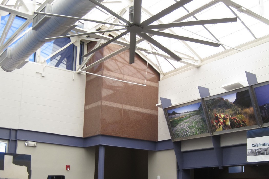 The Travel Center is one of twelve travel information centers operated by TxDOT to provide travel and tourist information to incoming motorists as they enter the state via the major highways. Notable architectural features include a barrel vault skylight and granite-clad tower. The 6,800-square-foot building is primarily clad with clay brick masonry veneer. The roof system features a multi-ply asphalt roof and architectural standing seam sheet metal. The window systems include aluminum-framed storefront and punched window units, aluminum-framed monitors, and clerestory windows. The main visitor lobby area features the aluminum-framed barrel vault skylight.