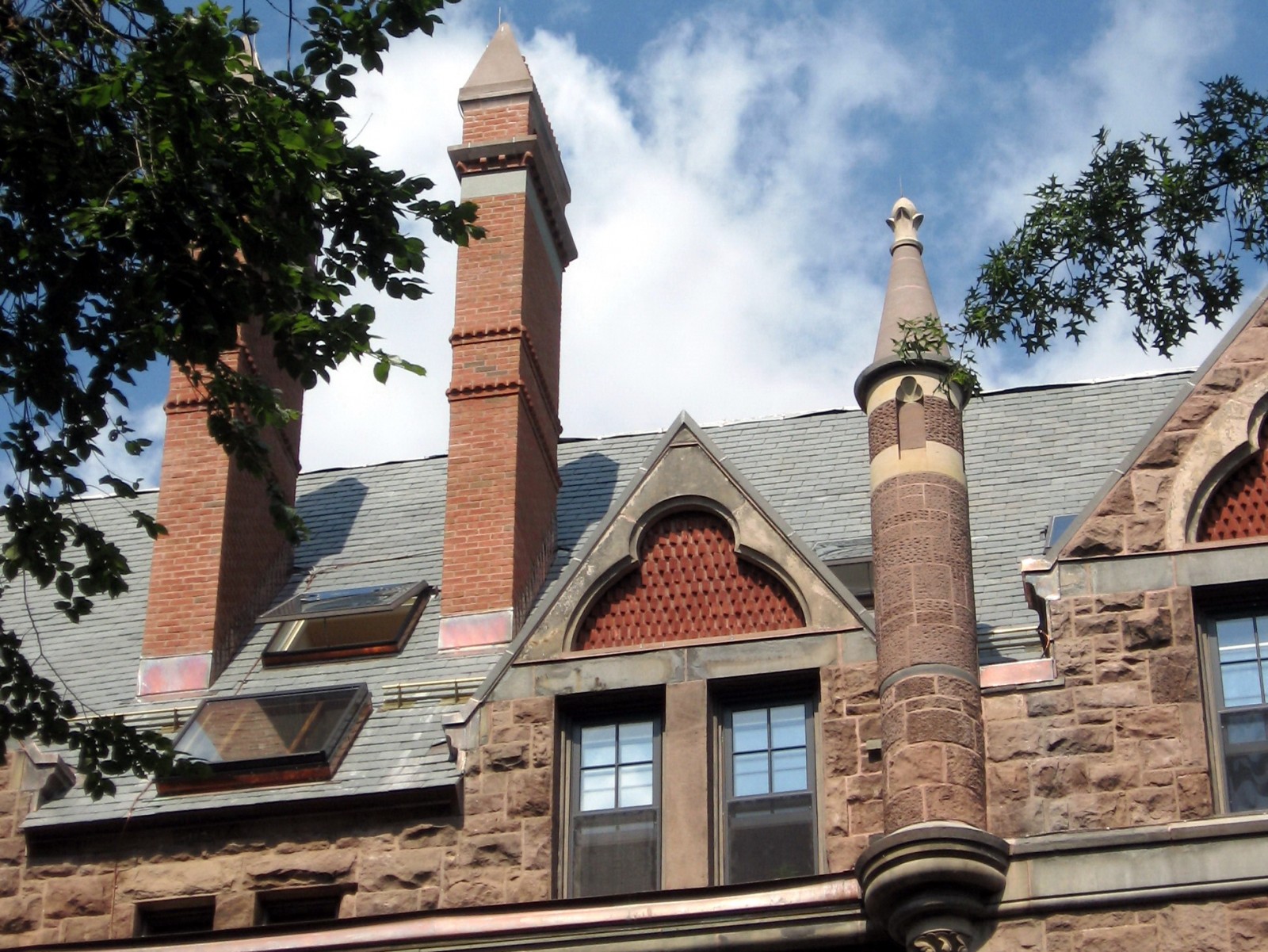The instability of the stone turrets, scaling of the brownstone facade, spalling brick at the chimneys, falling slate, and decay at wood windows prompted Yale University to ask WJE to perform a condition assessment of the building exterior and to develop a restoration program.