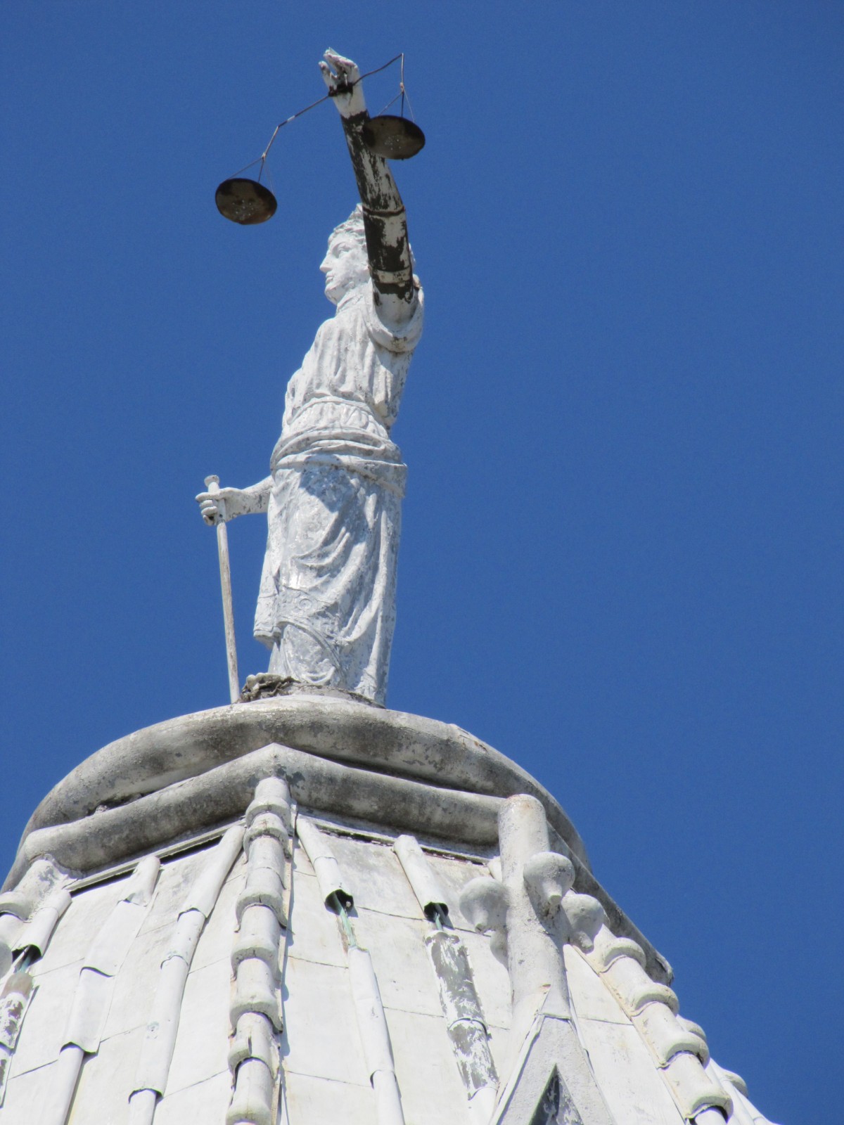 Edgar County contacted WJE in 2005 to evaluate the stability of Lady Justice, as well as the building in general, due to reports of the statue leaning. WJE's investigation determined that the timber support framing for the statue was severely deteriorated due to long-term exposure to moisture. Temporary stabilization was installed until funding for repairs could be procured. The goal of the evaluation was to develop repair documents to restore the tower, dome, and statue.