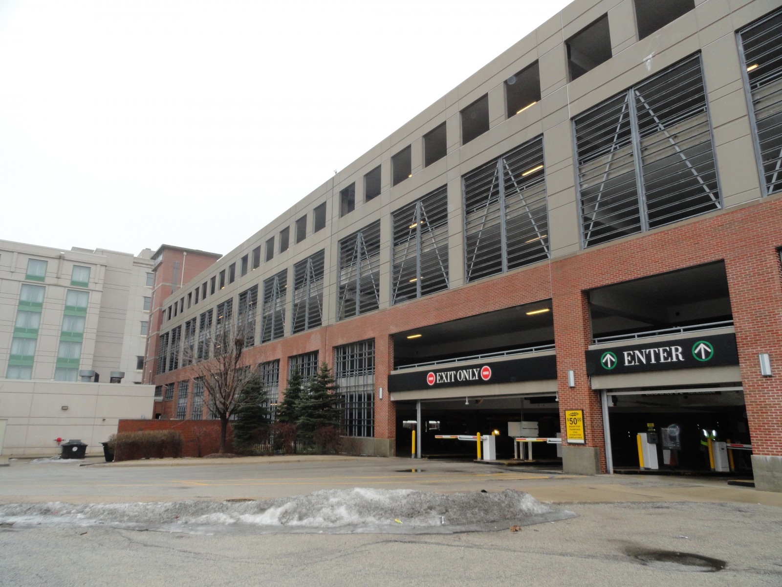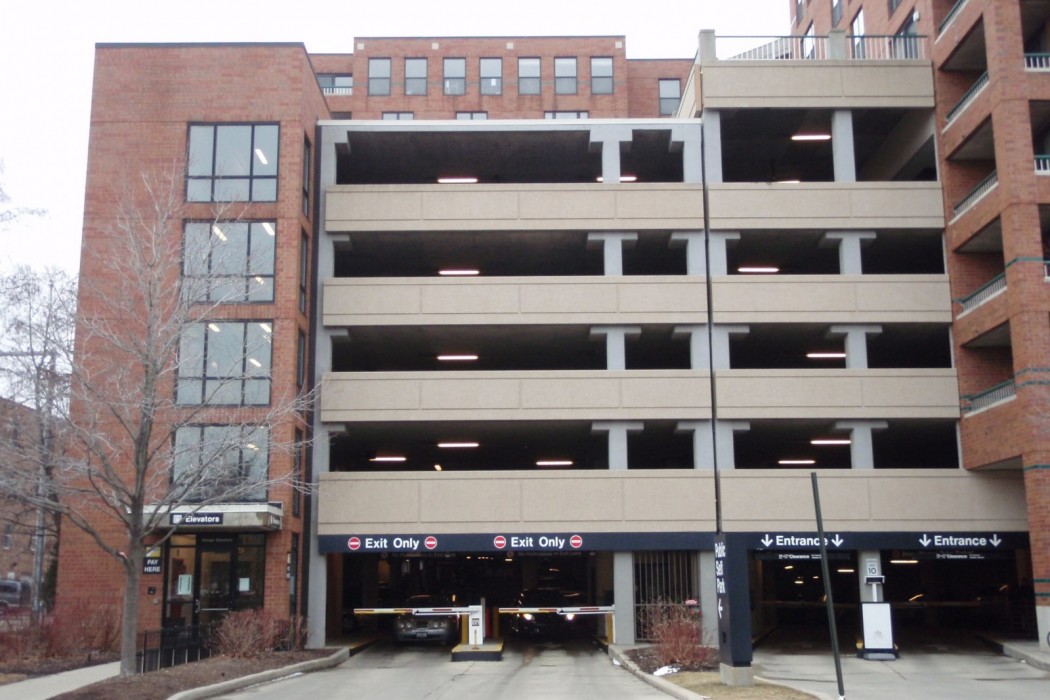 Three garages owned by the City of Evanston were the subject of this project—the five-story Church Street Garage, built in 1989; the six-story Maple Avenue Garage, built in 2000; and the twelve-story Sherman Plaza Garage, built in 2004. Each garage is constructed of post-tensioned concrete slabs and each has a facade consisting primarily of precast concrete.