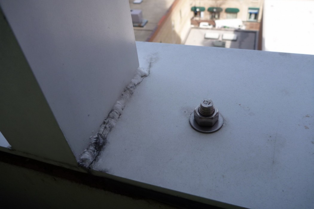 The distress and deficiencies addressed by the repairs included unsound concrete, strength deficiencies of vehicle guard walls, deficient gravity and lateral supports for precast concrete facade panels, cracked welds in aluminum facade components, and cut beam stirrups at pipe penetrations. WJE performed surveys to document the extent of concrete deterioration, deficient facade panel connections and other existing conditions. Analyses were performed to design structural repairs, including beam capacity based on the damaged and the remaining beam stirrups. In addition to preparing specifications and drawings to implement the repairs, WJE also provided engineering services during the bidding and construction phases of the repair project.