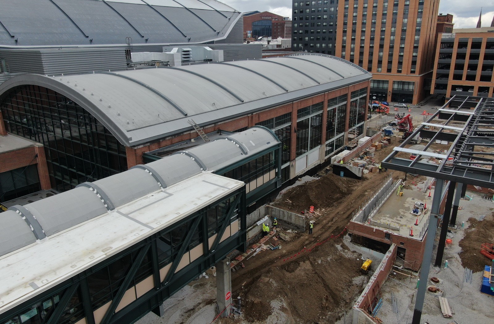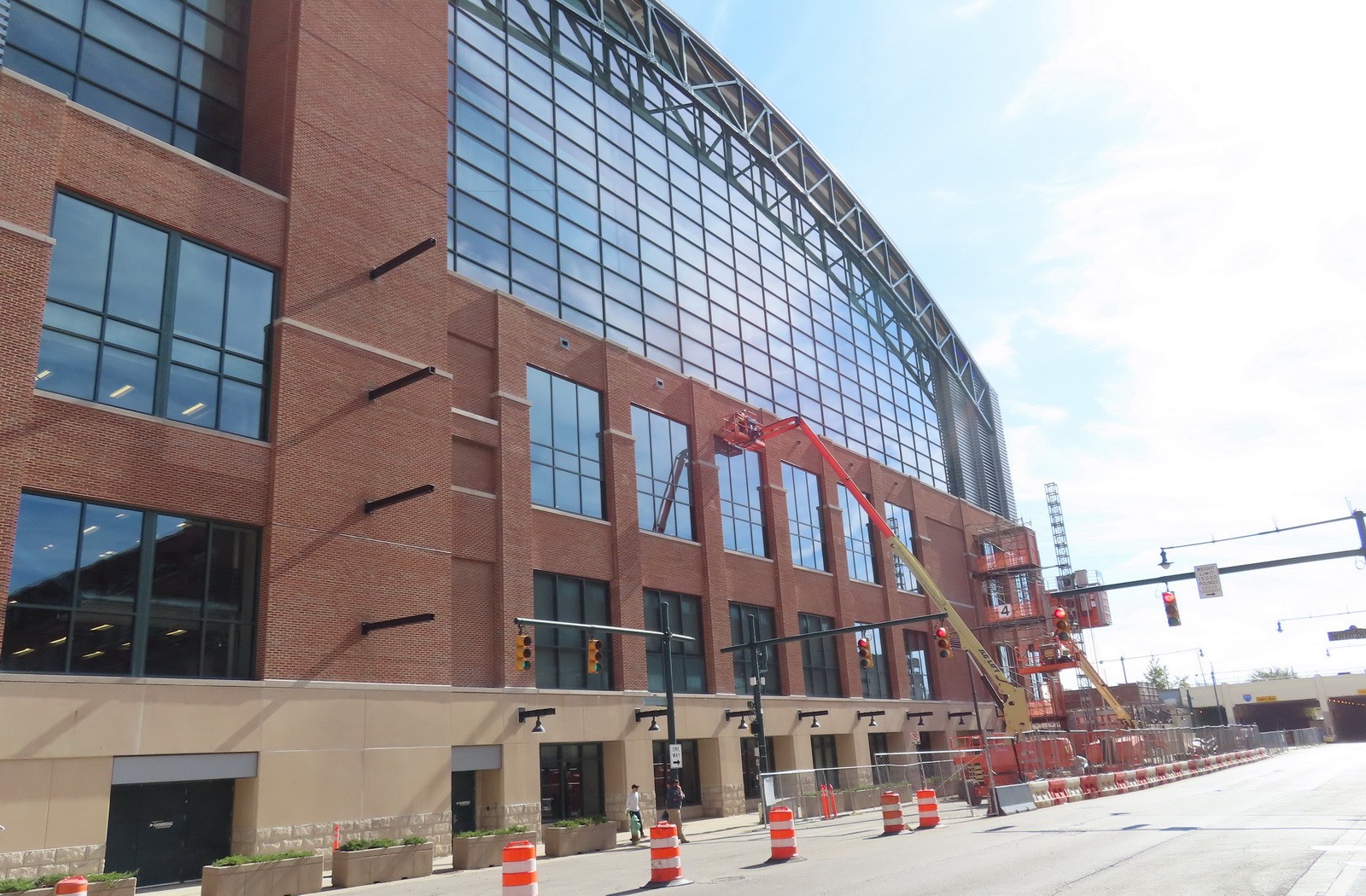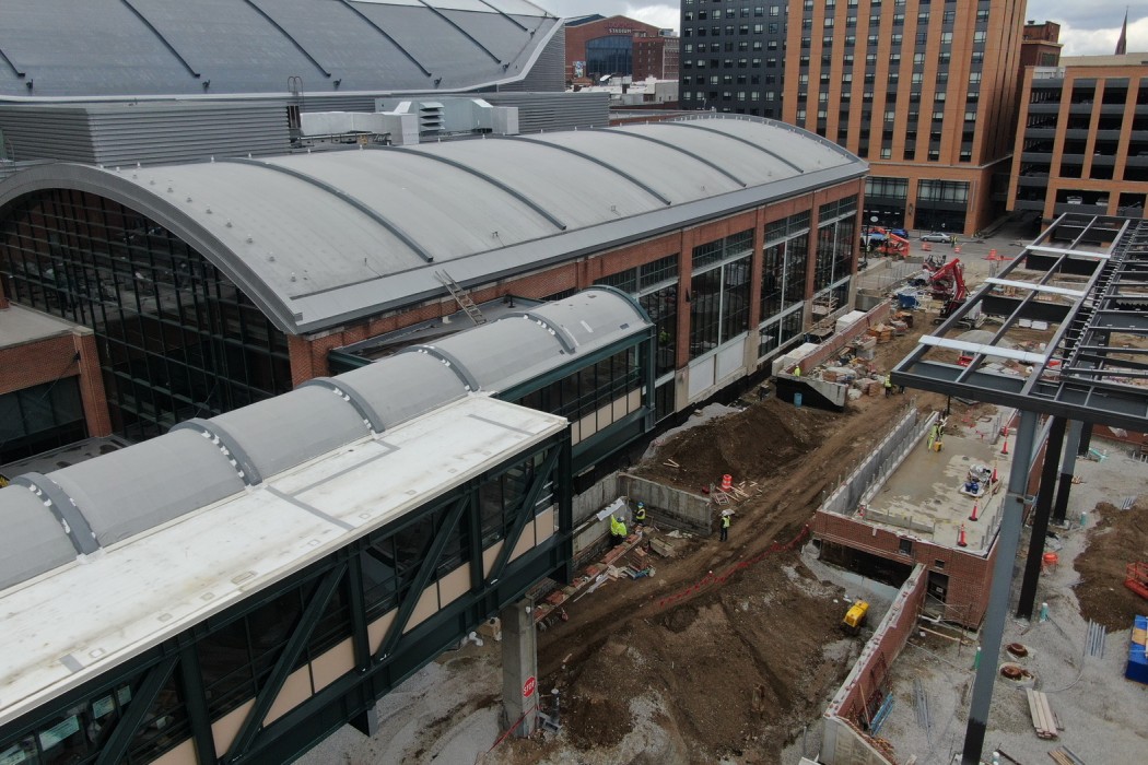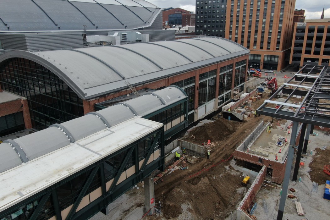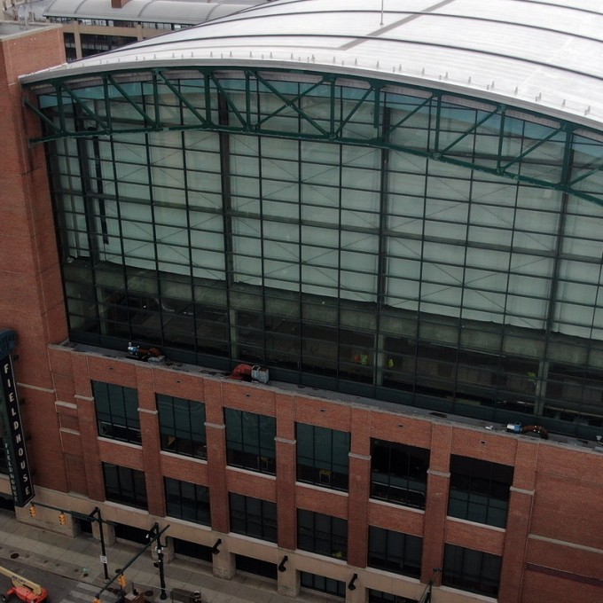 Completed in 1999, the recently renamed Gainbridge Fieldhouse is approximately 750,000 square feet and serves as the primary venue for the Indiana Pacers and the Indiana Fever basketball teams. The fieldhouse is covered with seventeen separate roof areas and clad with a combination of brick, limestone, metal panels, and curtain wall systems. In 2020, the Capitol Improvement Board of Managers for Marion County (CIB) and Pacers Sports and Entertainment commenced the Fieldhouse of the Future project, which included renovations to the fieldhouse to update the interior amenities, adding an outdoor terrace, and constructing the Bicentennial Unity Plaza. The work also included exterior building enclosure repairs.