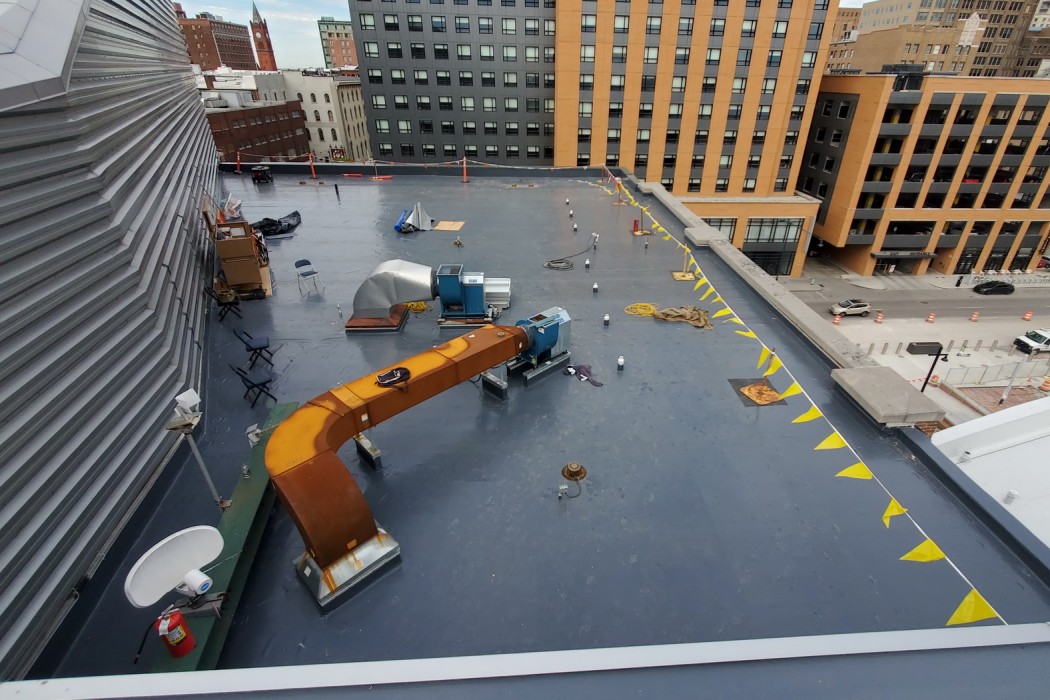 In 2020, CIB and their design architect Populous again engaged us to provide roofing and masonry consulting and repair design services as part of the Fieldhouse of the Future project. Populous engaged us to design replacement roofing at the remaining fourteen roof areas (one of the seventeen total roof areas was designed and replaced by others), including at the new outdoor terrace. Additionally, CIB engaged us to provide masonry evaluation and repair design services for the existing brick and limestone walls of the fieldhouse.