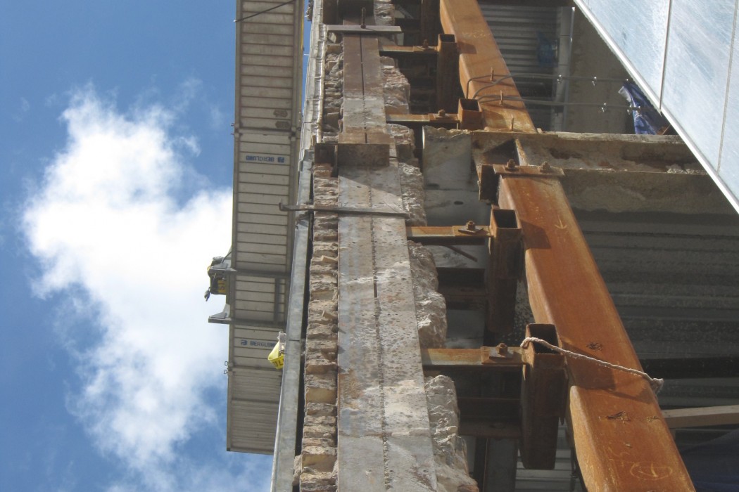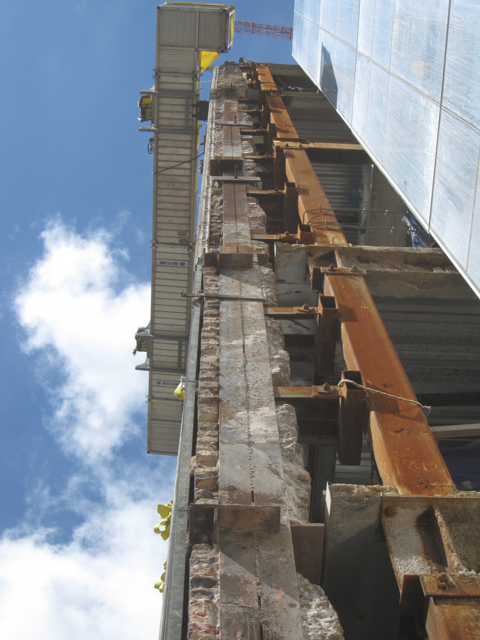- Reviewed the temporary support structure that was installed to retain the existing facade in-place during demolition of the remaining building and construction of the new building.