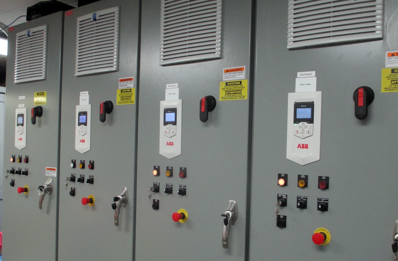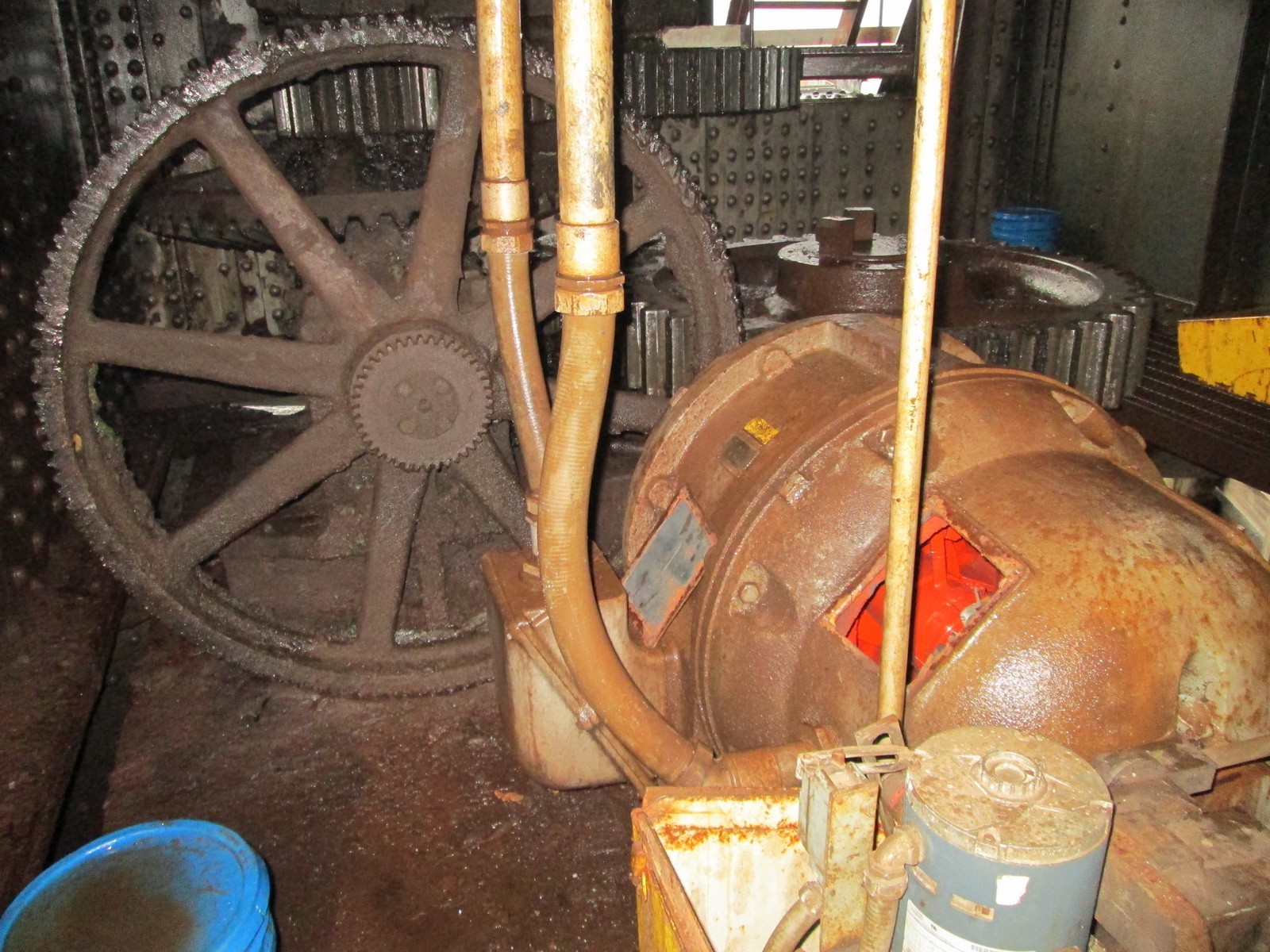 The drive system replacements included replacing the motors and drives with modern induction motors and variable frequency drives. Replacing the braking system with electromechanical brakes with modern thruster brakes and drive-initiated dynamic braking enables the operating bridge braking using the new motors and drives and uses the electromechanical brakes as holding brakes. The existing bridge control system consisted of a combination of a programmable logic controller (PLC) and relay logic, but had not been configured as a redundant system. The replacement system, which consists of both the PLC and relay logic, is configured so that the PLC is the primary form of bridge control, with the relay logic acting as backup.