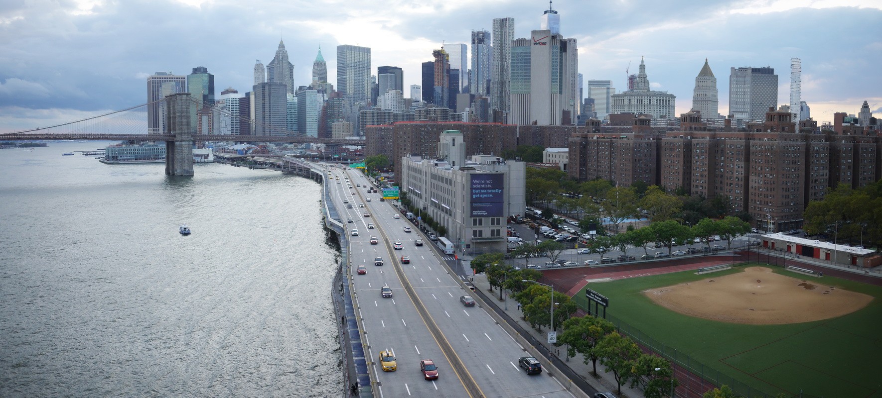 Daniel Frankfurt, P.C. was retained to rehabilitate FDR Drive, mitigating water leakage through the roof slab, concrete delamination, and spalling that endangered traffic on the roadway below. WJE was retained to evaluate the overall condition of the roof structure and to determine an appropriate waterproofing design to protect the structure with minimal disruption to the surface-level parks and residences.