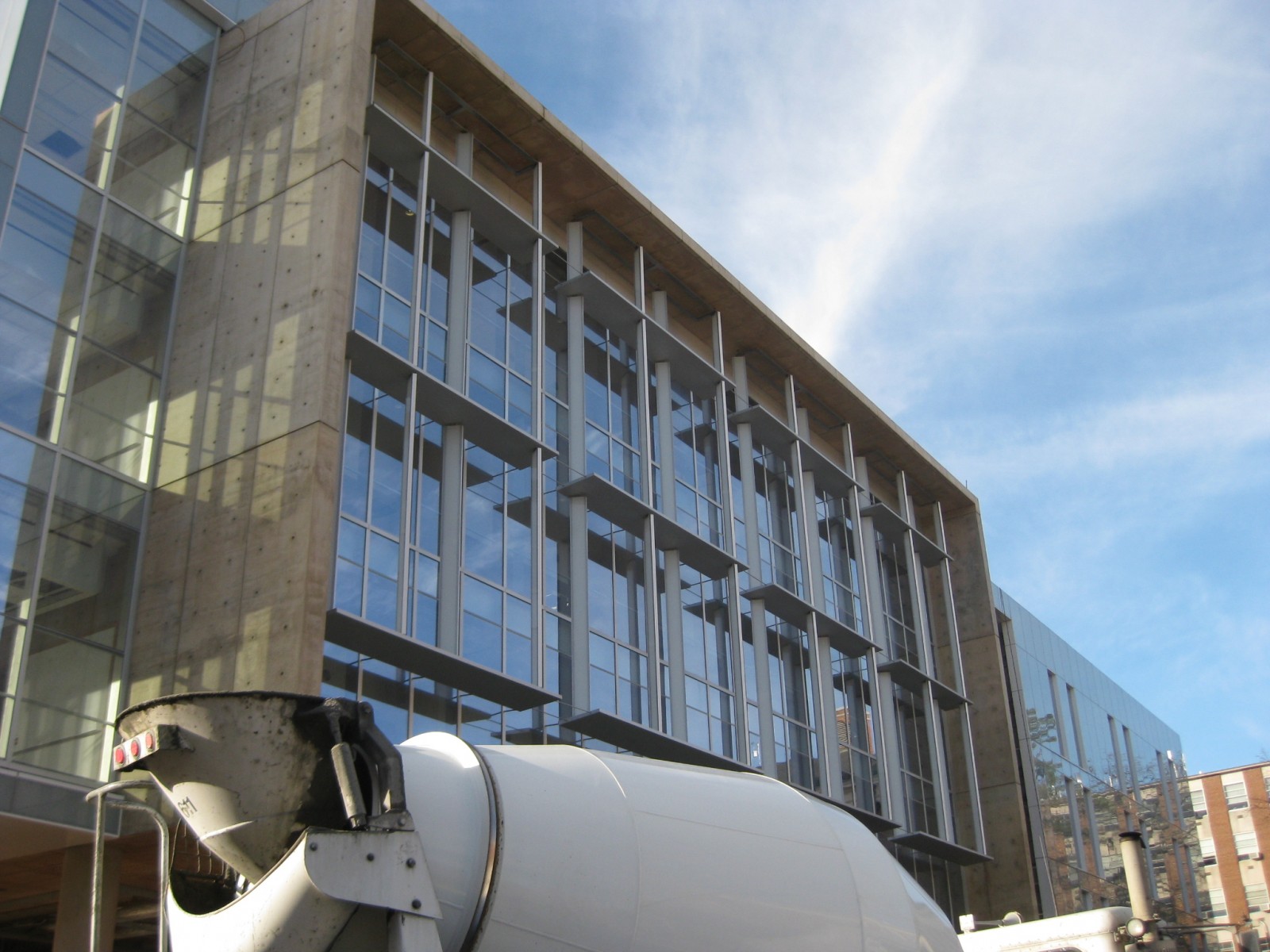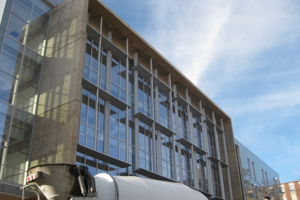 The Genome Science Building is an eight-story, 228,000-square-foot structure on the University of North Carolina’s Chapel Hill campus. The building is comprised of three “pods” at the north, east, and west, which provide wet and dry laboratory space for campus researchers. Three separate unitized curtain wall systems provide natural light to the interior at all elevations, and exterior brise soleil, permanent solar shading, and fritted glass provide shading to varying degrees around the building. A glass enclosed greenhouse spans over two of the pods at the roof level, and a green roof system is installed over the roof of the remaining pod. Hot rubberized asphalt waterproofing and roofing are installed at the ground-level plaza and roof levels.