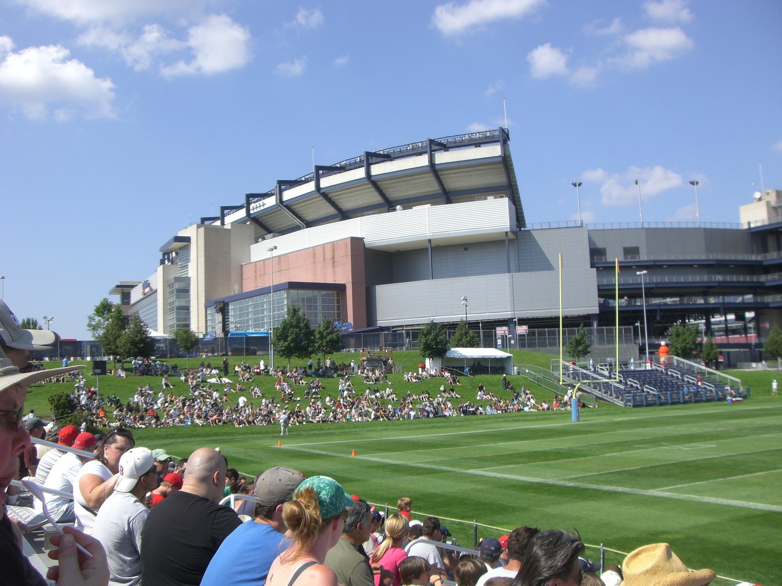 Gillette Stadium is the home of the NFL's New England Patriots and MLS's New England Revolution. The stadium opened in May 2002, and was a design-build effort lead by Beacon-Barton Malow, JV. The 68,756-seat stadium is constructed with structural steel columns and rakers and precast concrete stands. Walking access to upper levels is provided by stairs and two signature switch-back ramp structures at the north end of the stadium.