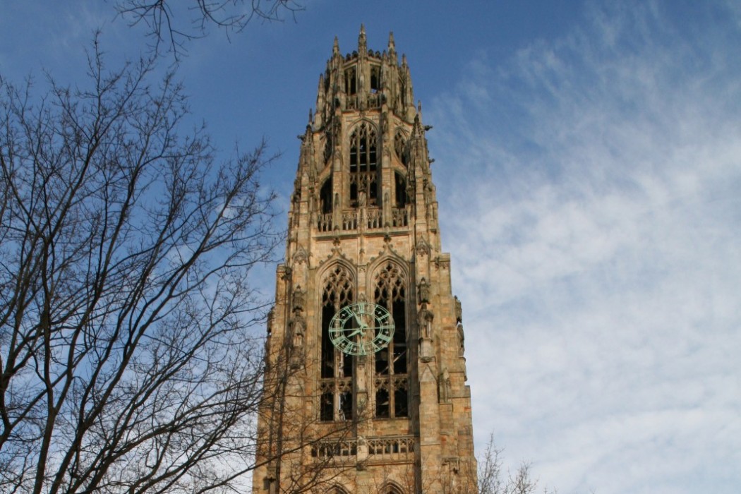 Harkness Tower is a focal point on the campus of Yale University. Constructed from 1917 to 1921, James Gamble Rodgers based his design for this collegiate gothic structure on the fifteenth-century St. Botolph's Church in Boston, England. The tower rises 216 feet and is decorated with statues depicting famous Yale alumni as well as philosophers, allegorical figures, warriors, athletes, students, socialites, and poets. Its unreinforced masonry-bearing walls are faced with New England granite and Ohio brownstone backed by multiple withes of brick.