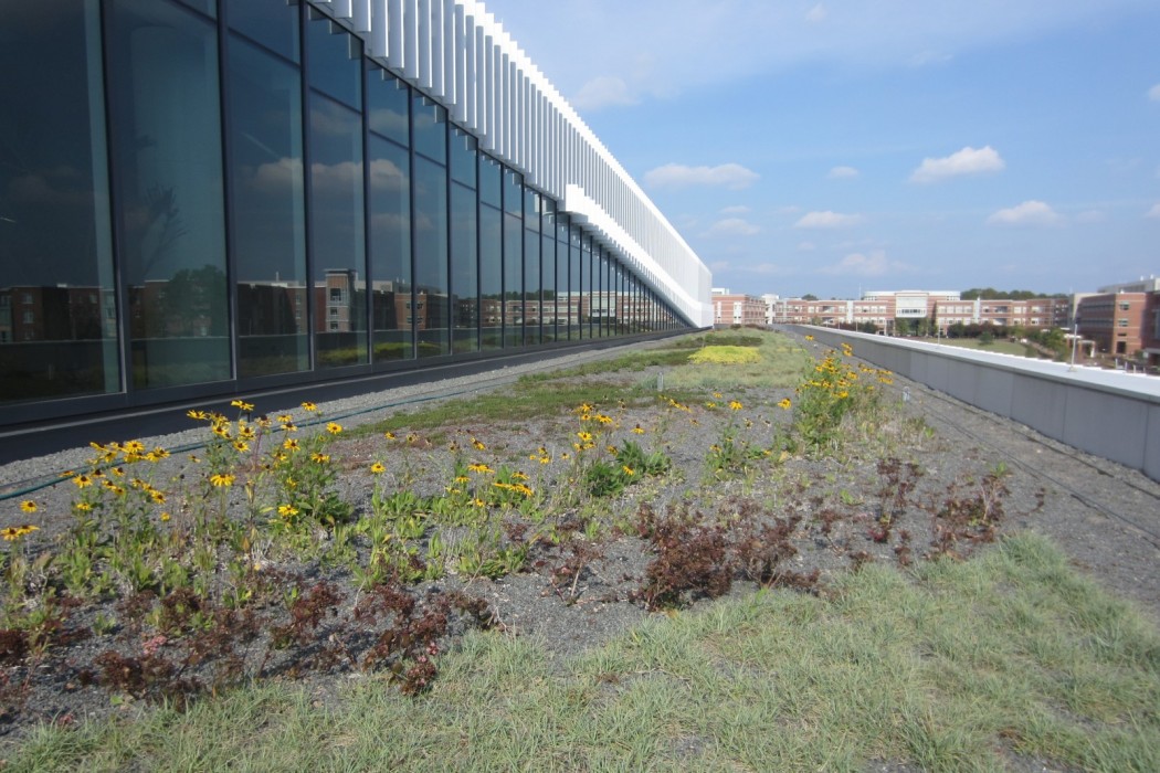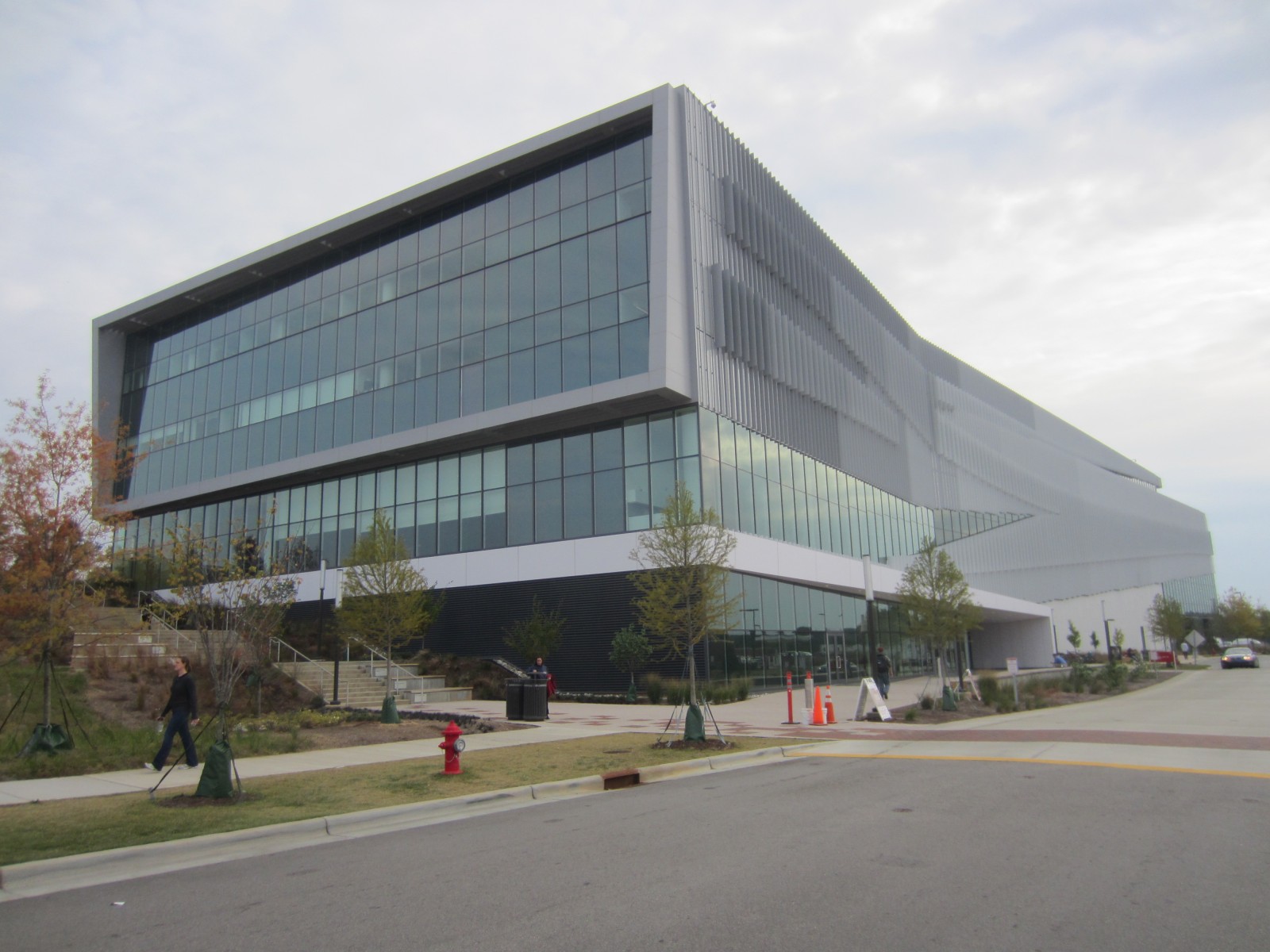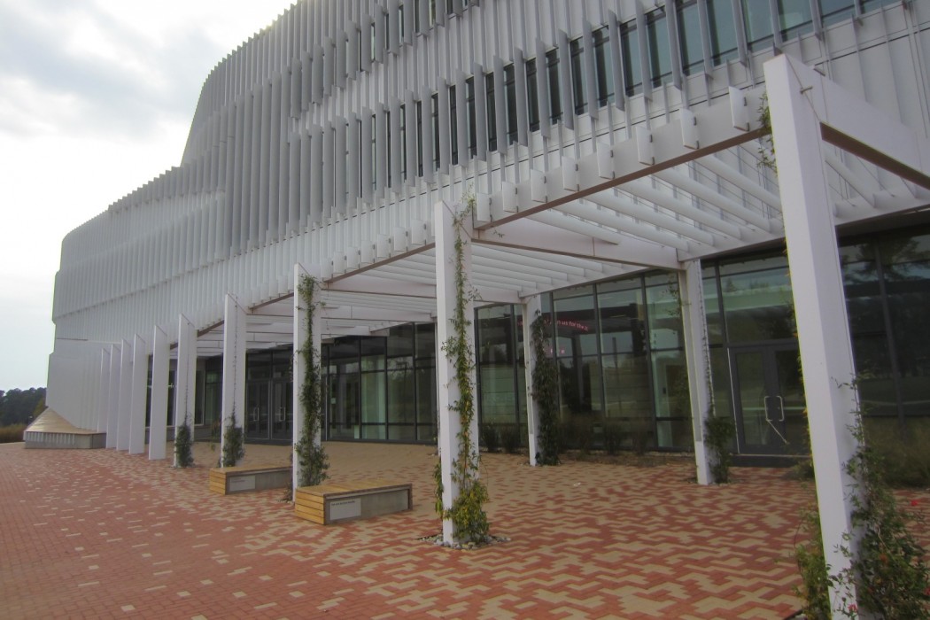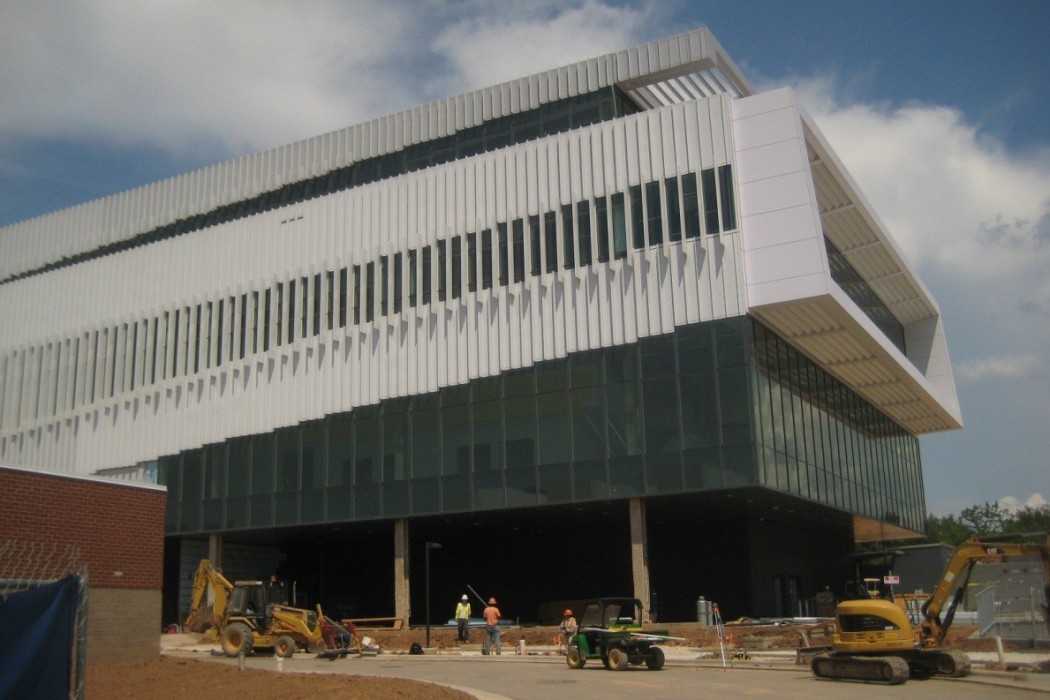 The Hunt Library consists of a four-story, curved facade building designed by Snohetta, located centrally on the university campus. The exterior of the building features a unitized curtain wall and small areas of fiber cement panel cladding over a comprehensive air barrier and green roof assemblies. The new library serves as the center of technology-based learning and stores over 1.5 million volumes in a five-story automatic retrieval system housed partially below grade.
