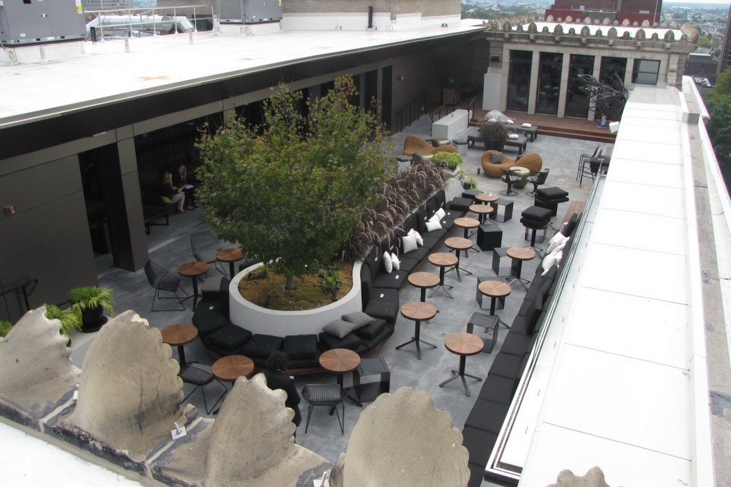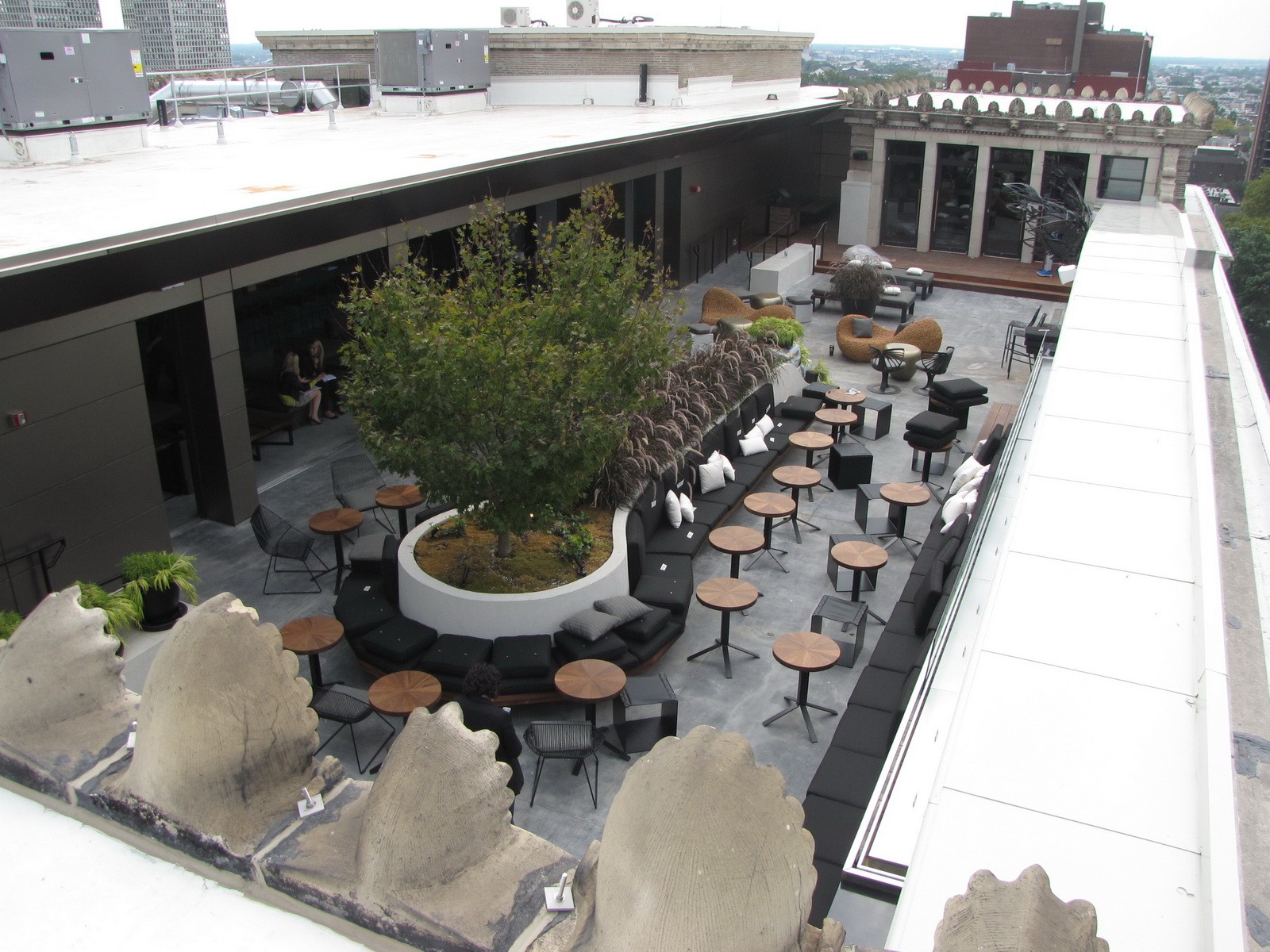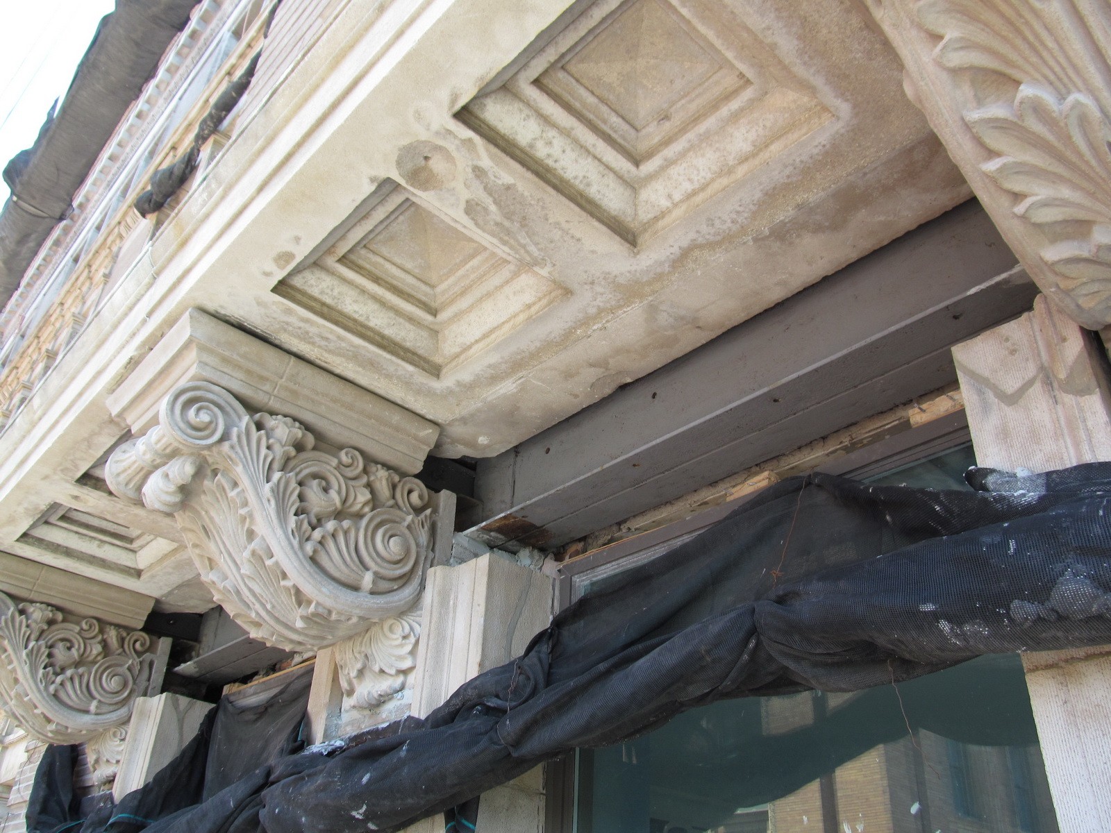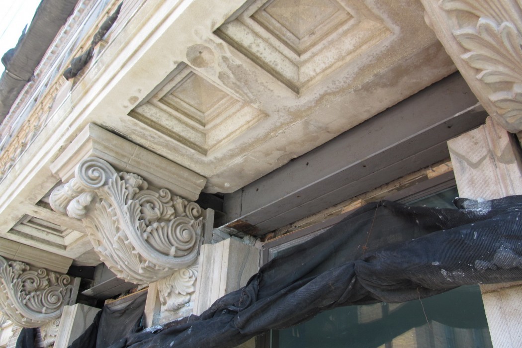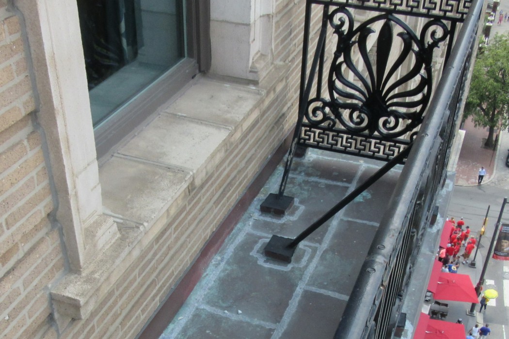As part of a team of consultants, WJE was responsible for the design of the exterior envelope restoration, including repointing of masonry mortar joints; brick and terra cotta repairs and replacement; evaluation and replacement of severely corroded steel; repair of cracked and spalled limestone and granite facade elements; new Juliet balcony railing anchorage and waterproofing; and replacement of the main roof, which included a split slab waterproofing design to accommodate lowering the structural slab for a new rooftop lounge. WJE also provided construction period services for the repair work to ensure that the level of workmanship in the field was consistent with the design intent conveyed in the contract documents as well as on-site engineering services to respond to unanticipated conditions.