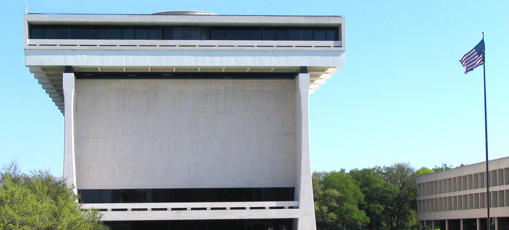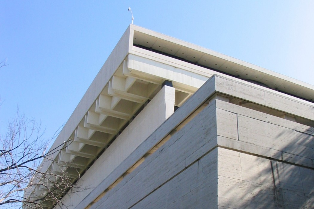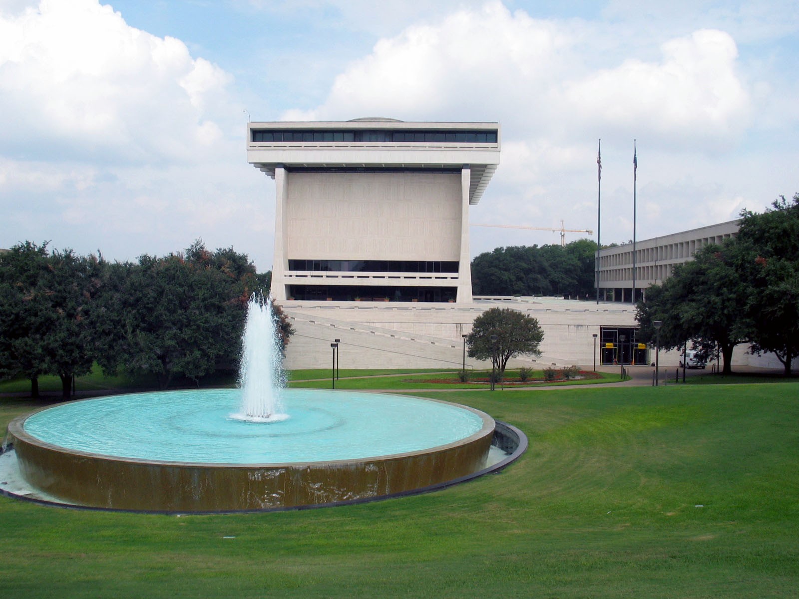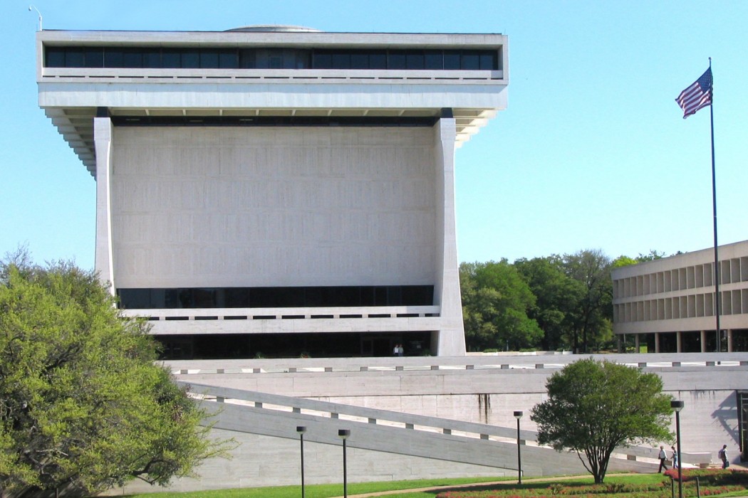 The Lyndon Baines Johnson Library and Museum opened on the University of Texas campus in 1971 as the archival repository for the papers of President Johnson. Designed by Gordon Bunshaft, the ten-story modernist library, which also houses offices and a museum, is clad in travertine. Surrounding the main building is a 90,000-foot travertine and terrazzo plaza supported by four independent structural systems. Beneath the plaza are storage spaces and lecture halls.