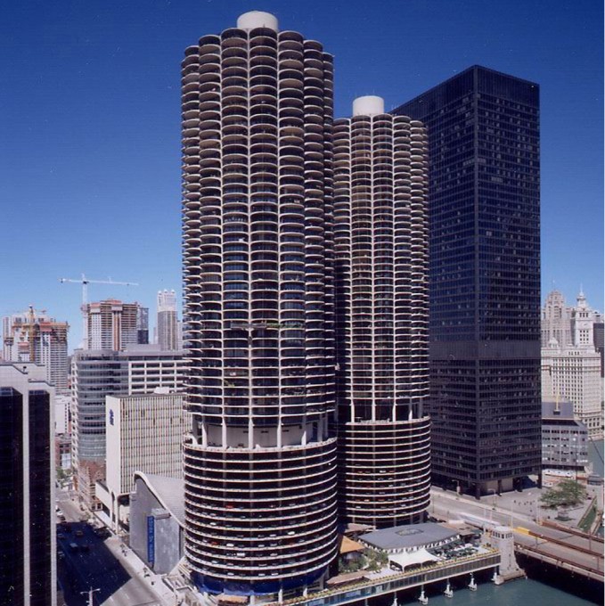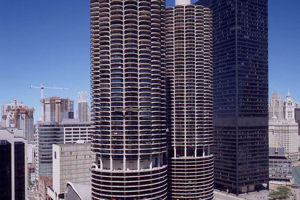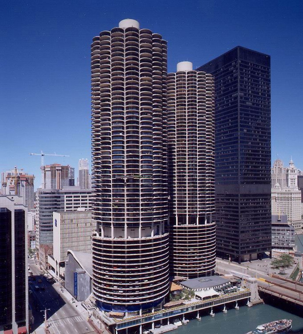 The twin towers of Marina City are sixty-story, residential, high-rise buildings that are part of a mixed-use complex on Chicago's near north side. Designed by Bertrand Goldberg Associates, the towers are one of the more architecturally significant buildings constructed in Chicago since World War II. The towers were the tallest reinforced concrete buildings in the world when they were completed in 1962.