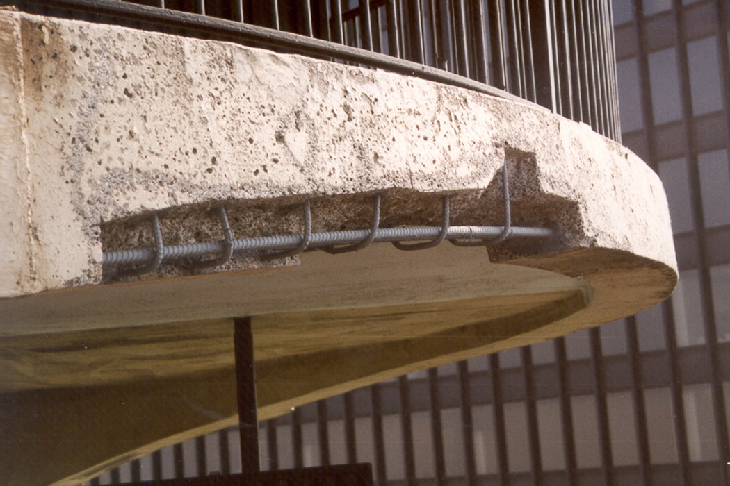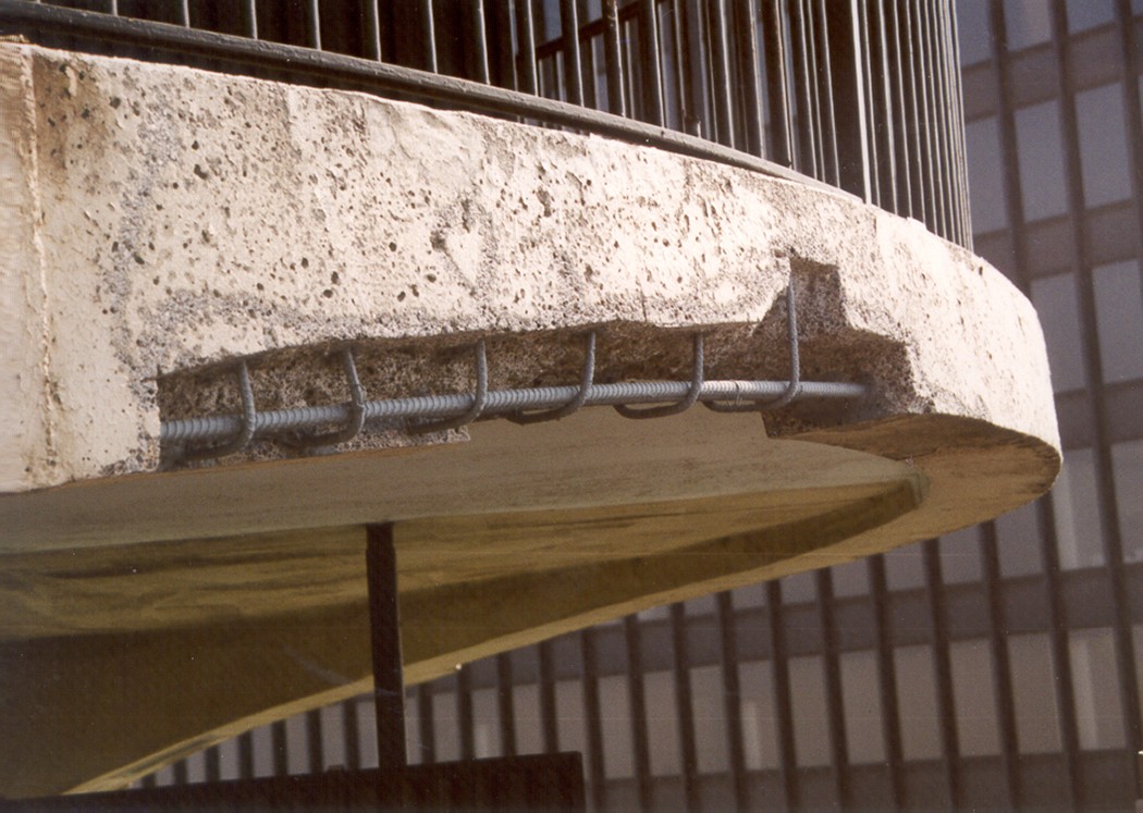In 1991, WJE conducted an investigation of the high-rise facade that revealed significant concrete deterioration due to the high chloride content. WJE developed repair drawings and specifications to address the deterioration. Major concrete repairs were performed on the facade and balconies at that time, and in some cases, extensive full-depth concrete repairs were required. Following the completion of the concrete repairs, waterproofing membranes were applied to a portion of the balconies and an architectural coating was re-applied to the facade to reduce the ongoing corrosion of the embedded reinforcement.