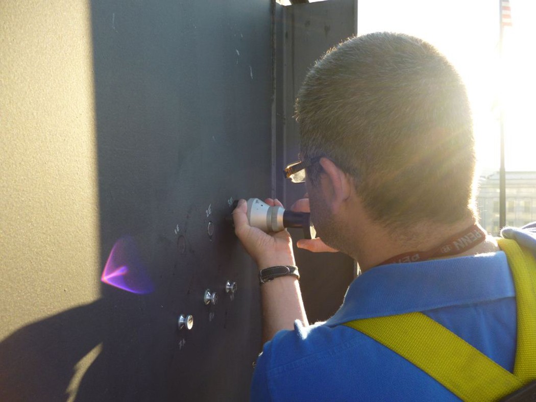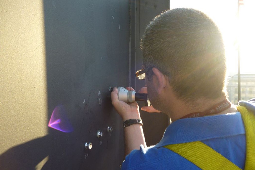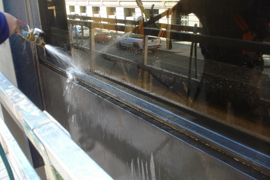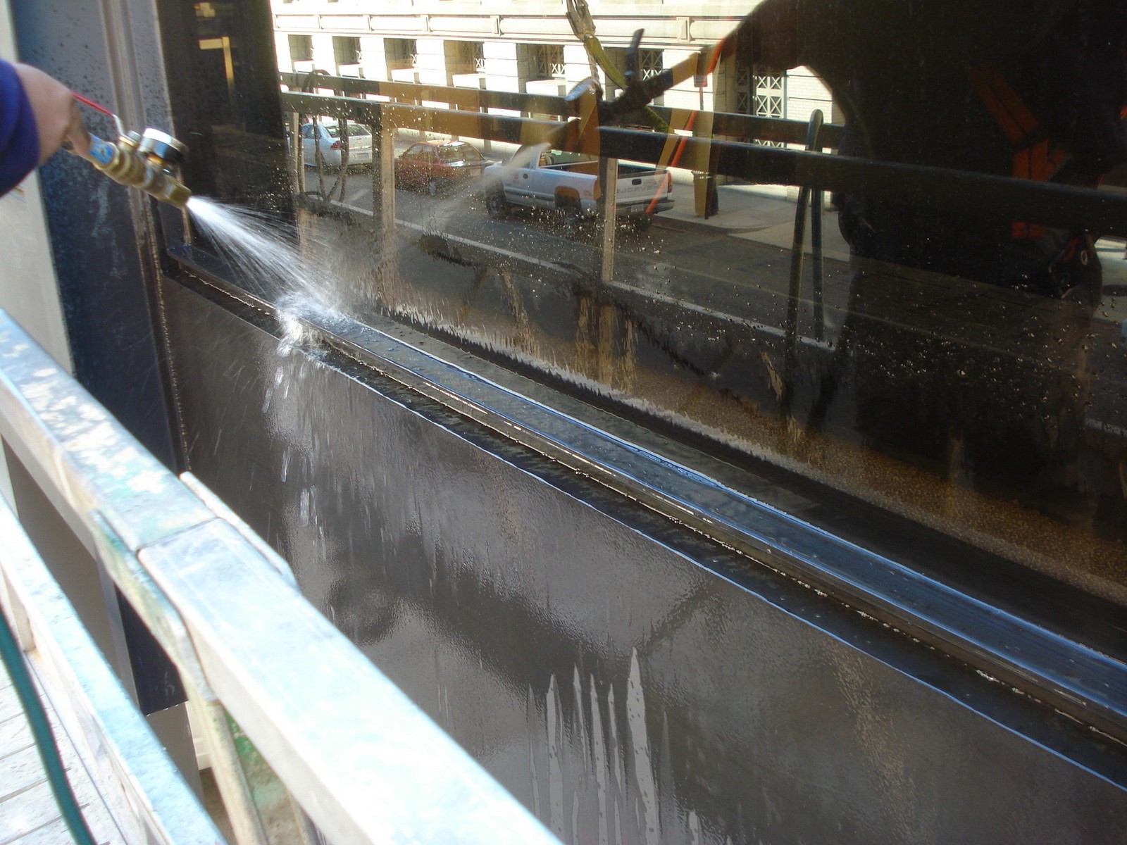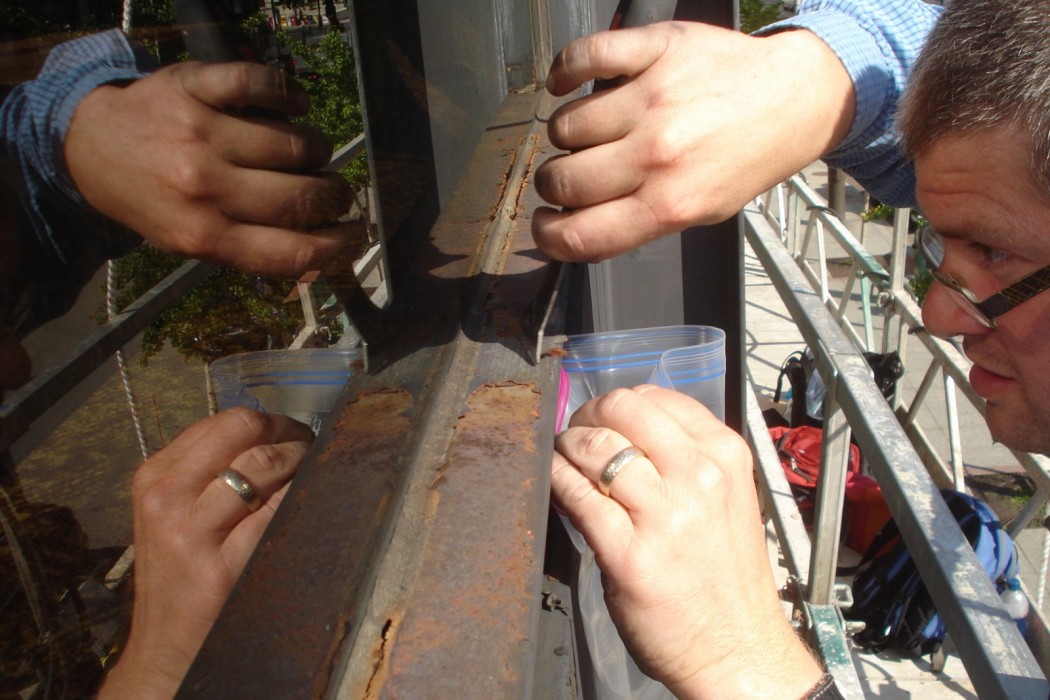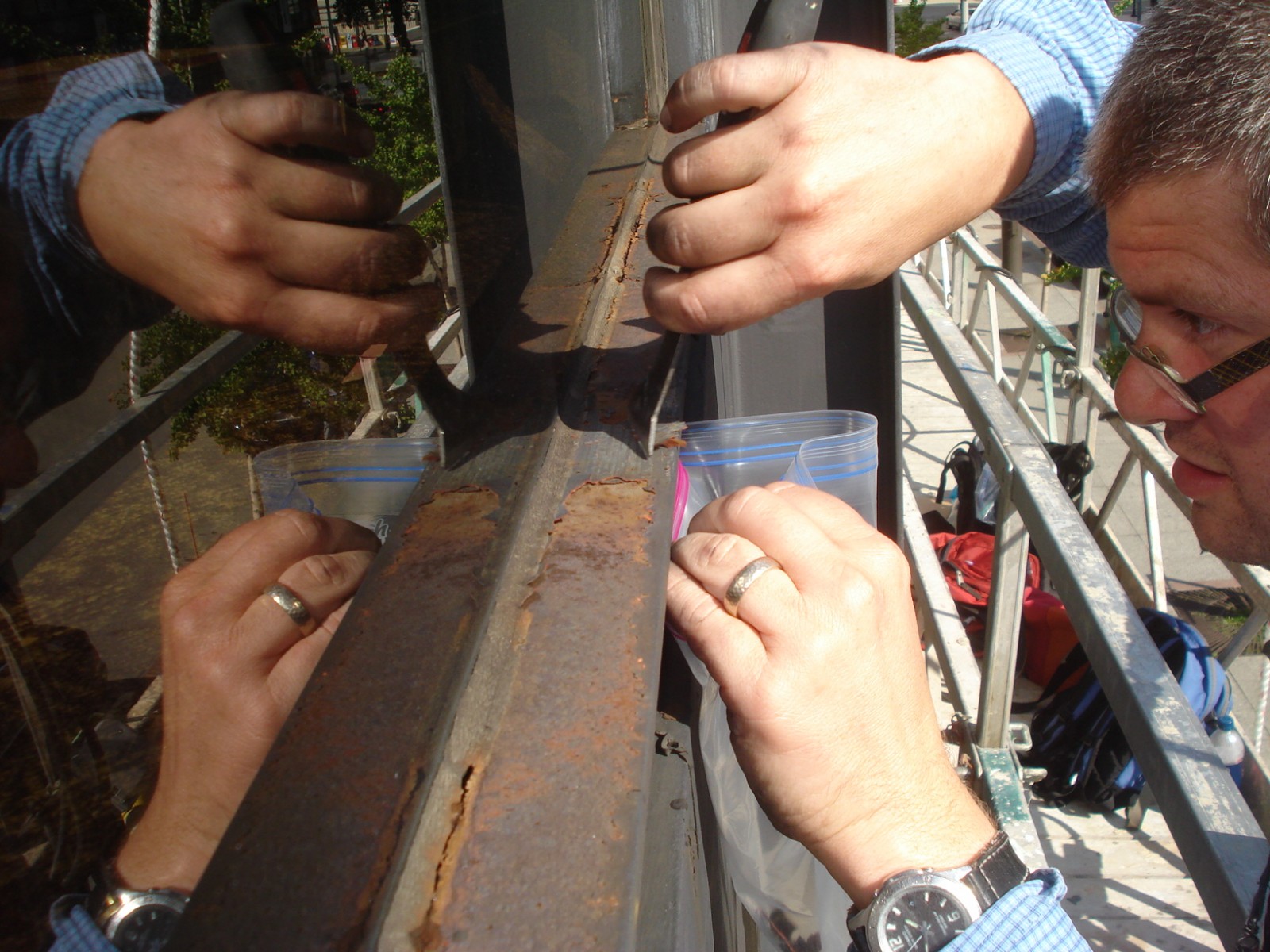 WJE evaluated the conditions of the coatings to identify possible approaches for surface preparation, recoating of the steel exterior elements. WJE also completed a thermal performance evaluation of the existing curtain wall. A series of trial repairs were tested through the installation of mock-ups of overcoating samples. The trials will then be reassessed after winter thermal cycling.