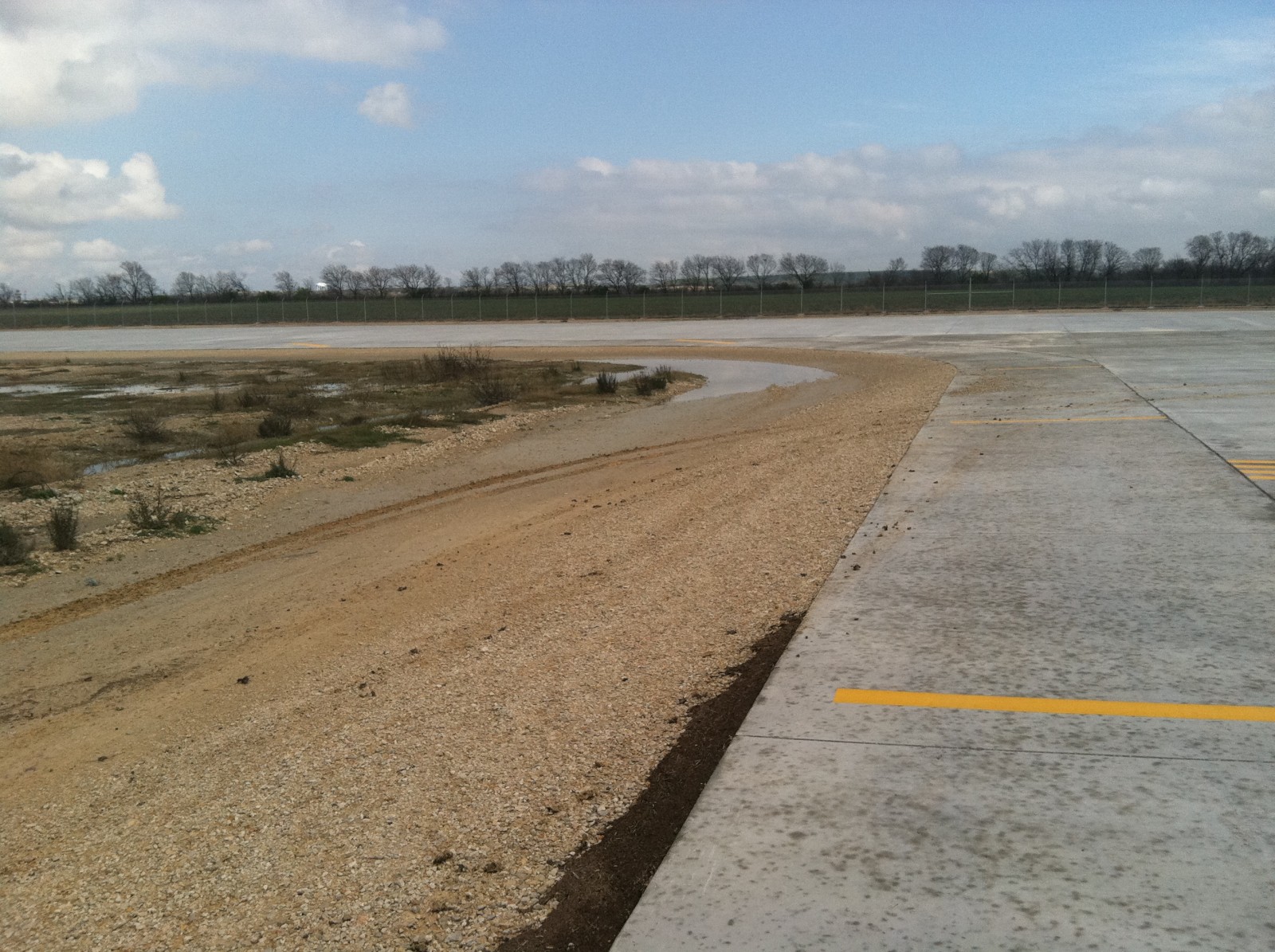 The existing in situ soils were stabilized and compacted. A base course of crushed limestone was added to provide a drainage layer. As a cost-savings effort, the widths of the runway shoulders were reduced to 12-1/2 feet prior to construction. WJE provided construction administration services for the construction of these improvements. The total construction cost for this project was $1.5 million.