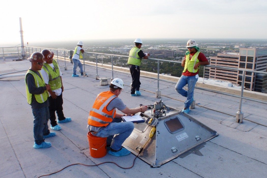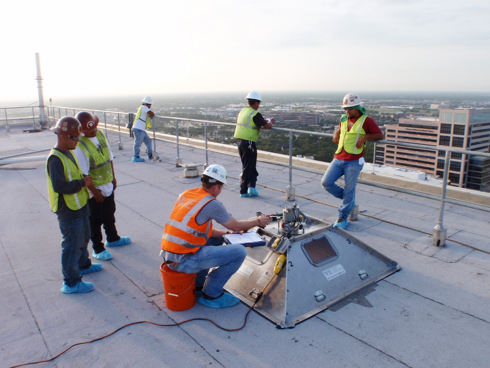 WJE formed a project team consisting of building enclosure professionals, each with unique glazed window wall, roofing and GFRC technical knowledge and experience. Each of these professionals provided peer reviews and construction services, including mock-up and field testing of systems related to their primary area of expertise. WJE also worked closely with the "Alkek Design Build" team to address potential interface challenges and offer solutions to assure that the performance of each of the building enclosure systems would meet the Owner's expectations. During the project, WJE's field services were increased to include twice a week site visits in order to enhance the windows, GFRC, and roof installations quality assurance. Due to the inability of the independent testing agency to complete the roof up-lift tests on schedule, WJE immediately responded to McCarthy's request to provide the equipment and completed the outstanding specified up-lift tests, as additional services. WJE's quick response allowed McCarthy to meet their required deadlines for the completion of these tests.